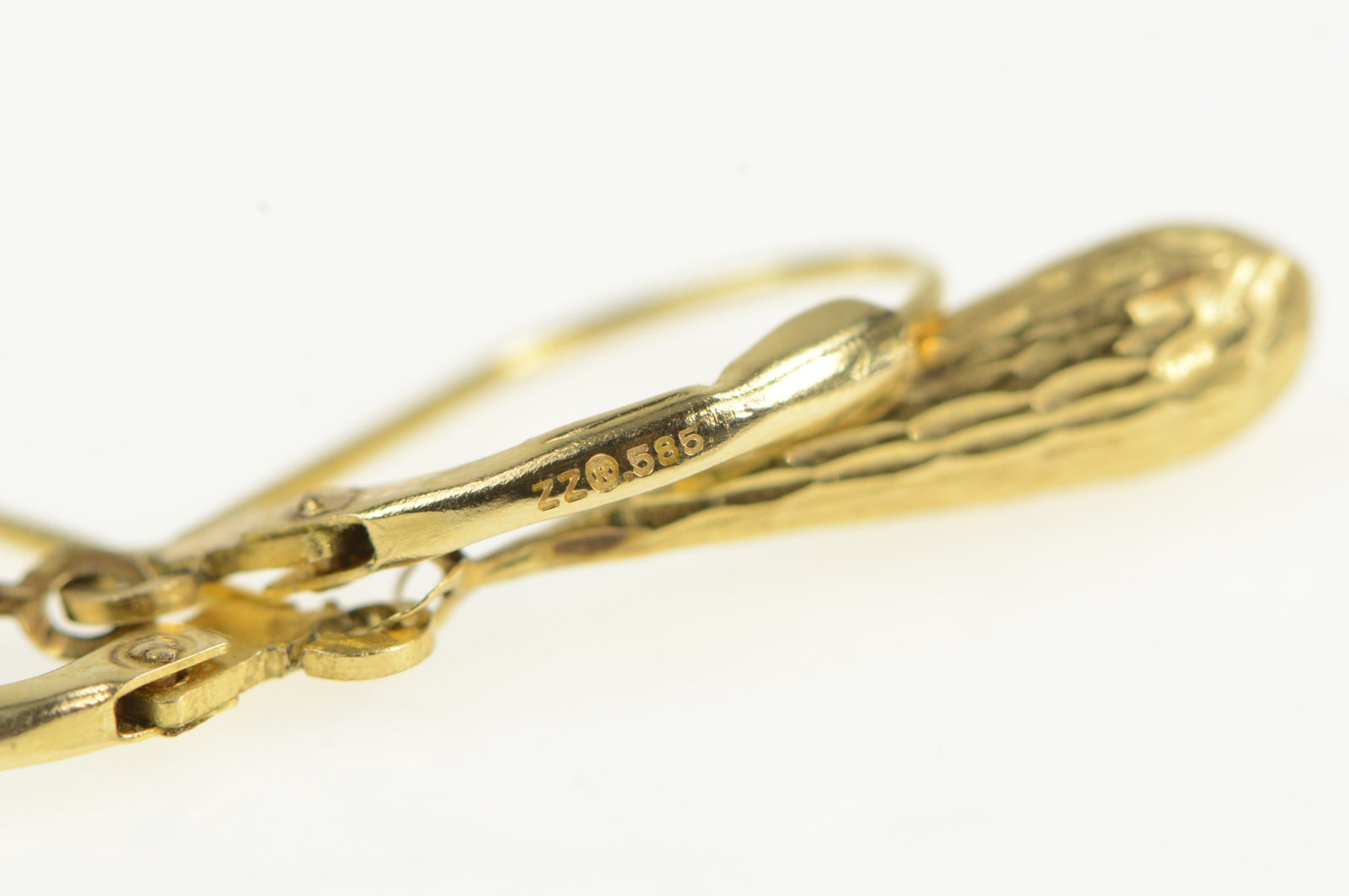 ·Item: 14K Diamond Cut Puffy Tear Drop Dangle Earrings Yellow Gold