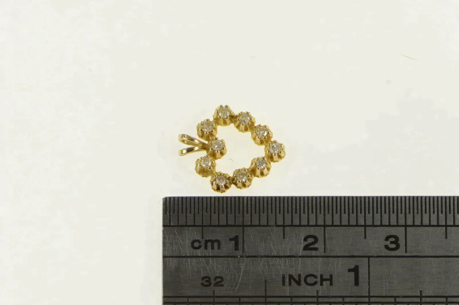 ·Item: 14K Diamond Inset Heart Love Symbol Vintage Charm/Pendant Yellow Gold