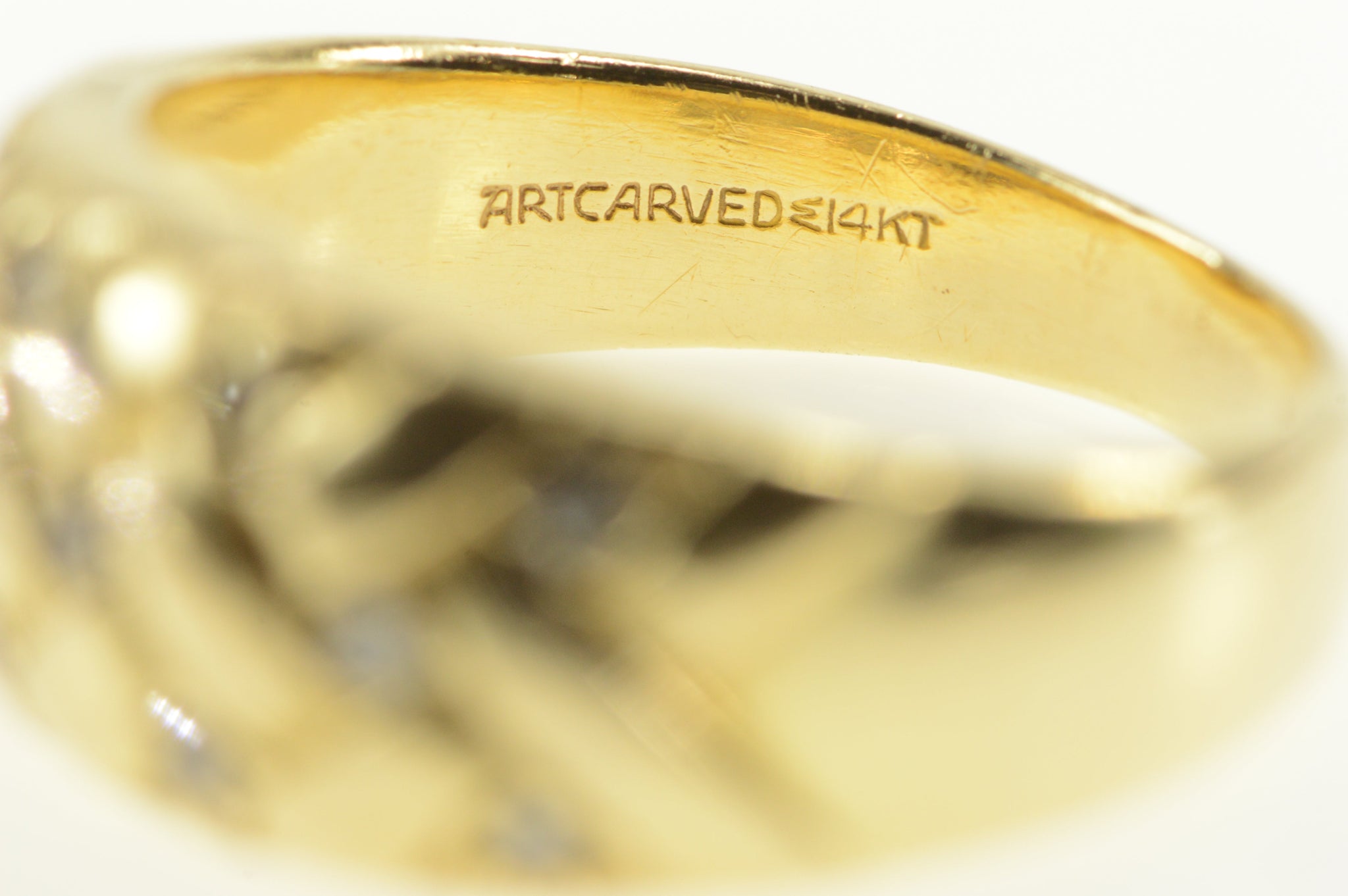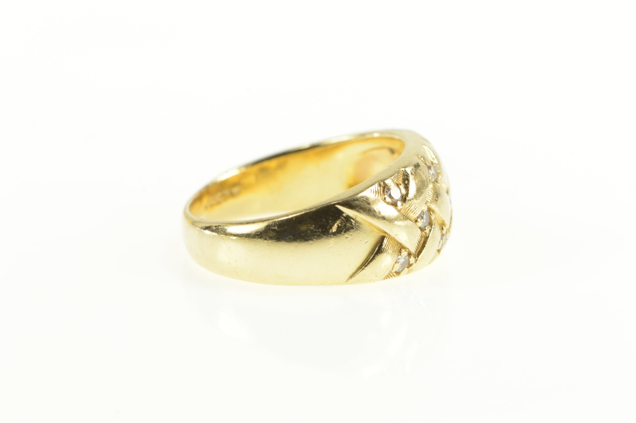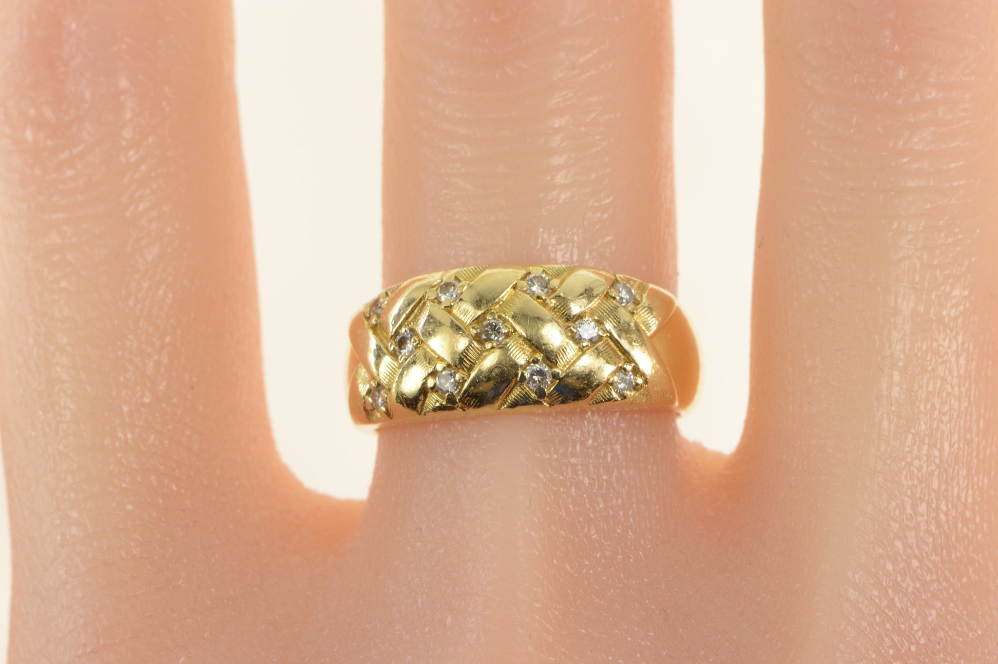 ·Item: 14K Diamond Inset Woven Braid Design Statement Ring Size 8 Yellow Gold