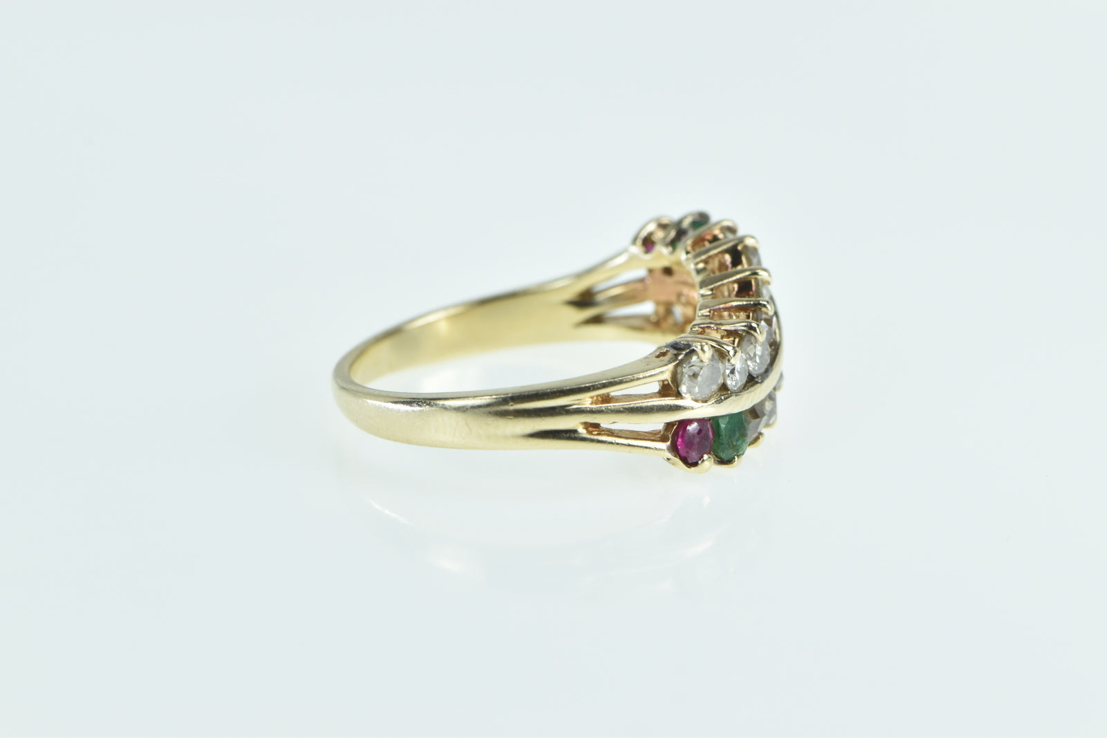 14K Diamond Ruby Emerald Wavy Band Ring Size 8 Yellow Gold