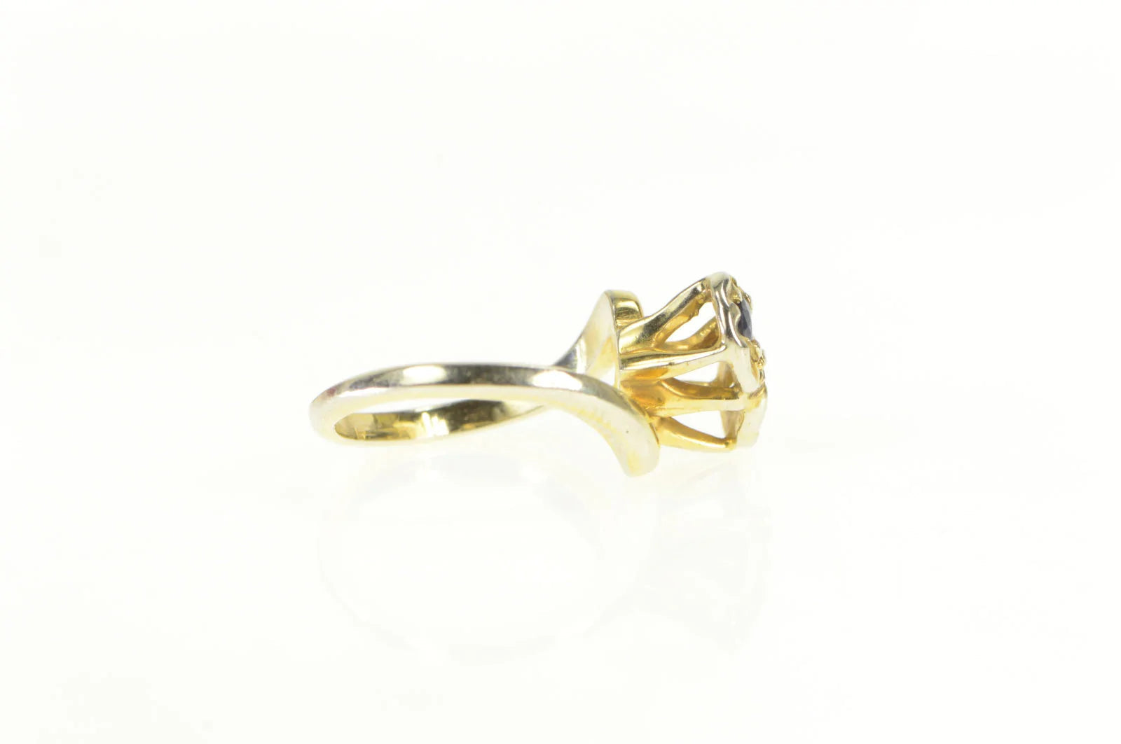 14K Diamond Sapphire 1950's Two Stone Bypass Ring Yellow Gold