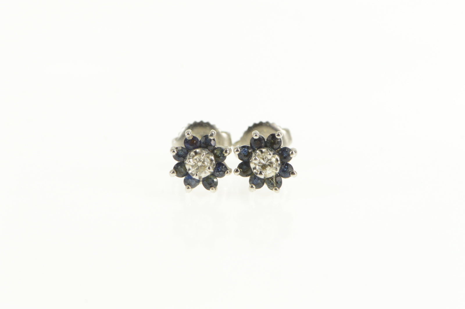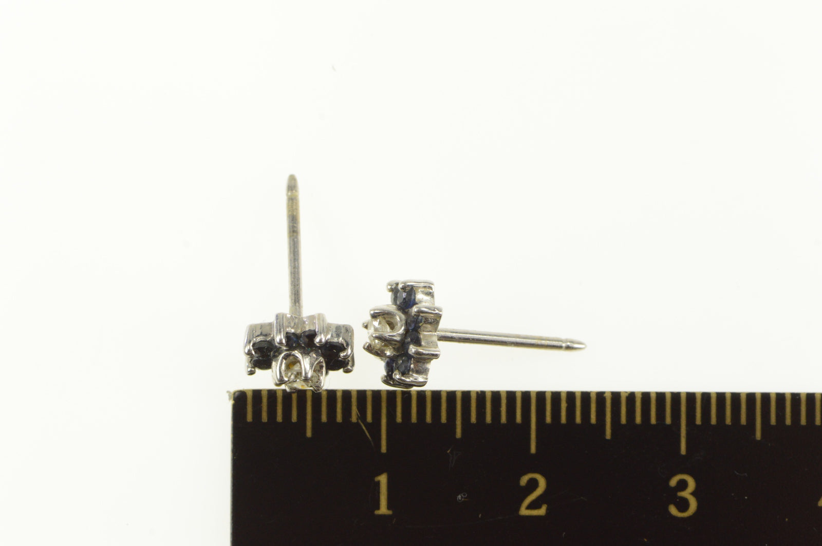 ·Item: 14K Diamond Sapphire Halo Flower Cluster Stud Earrings White Gold
