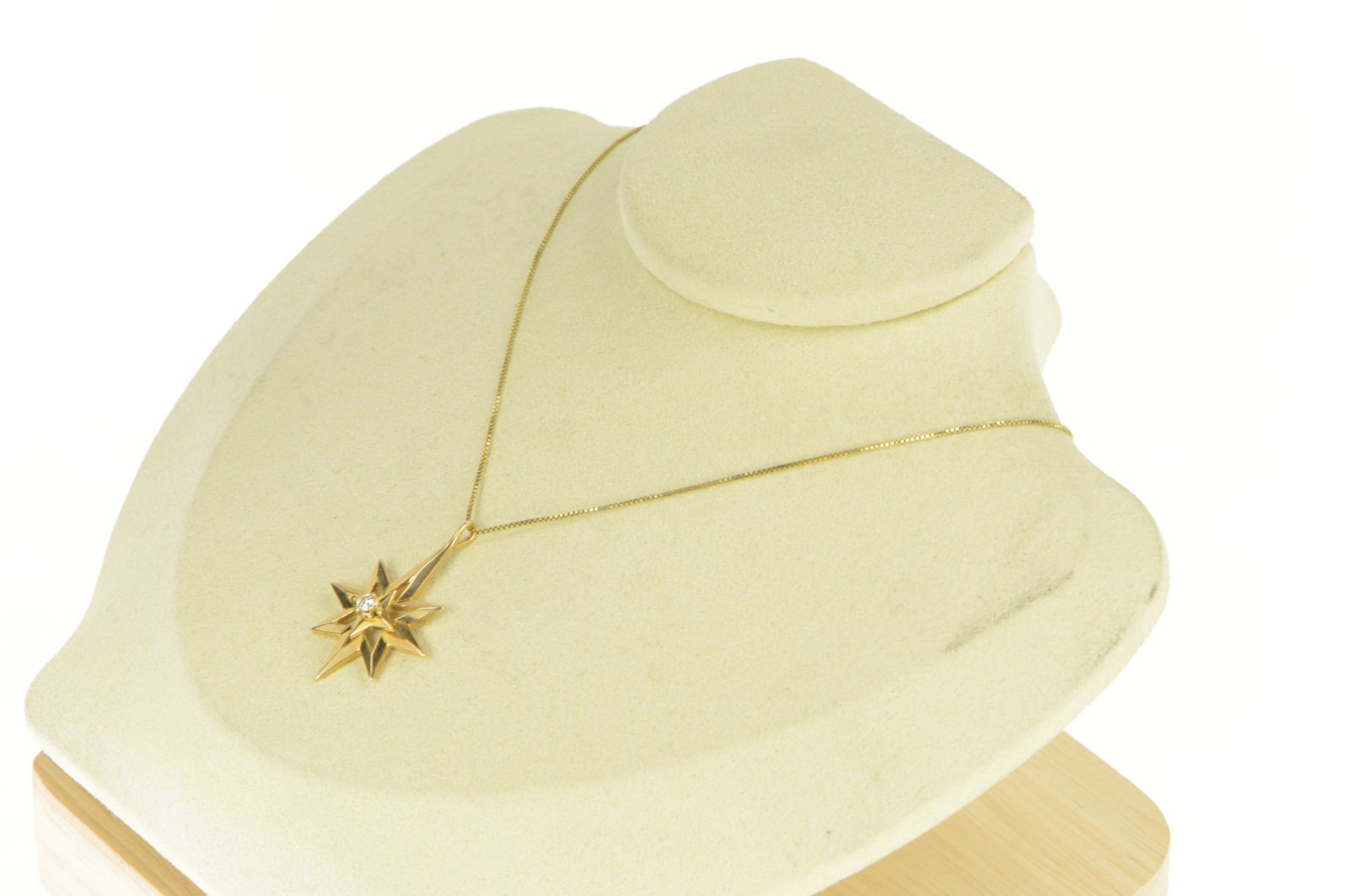 ·Item: 14K Diamond Solitaire North Star Retro Statement Pendant Yellow Gold