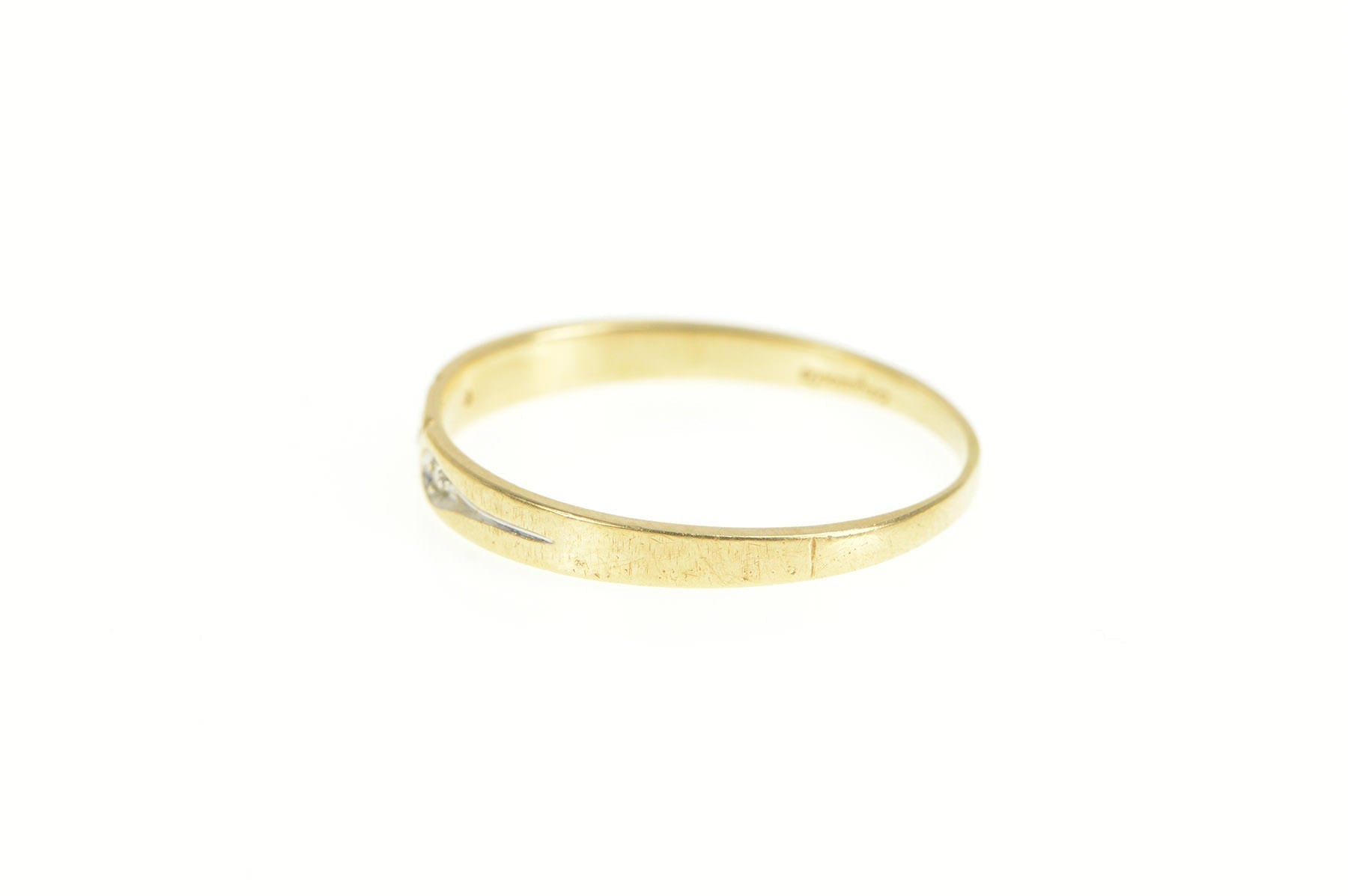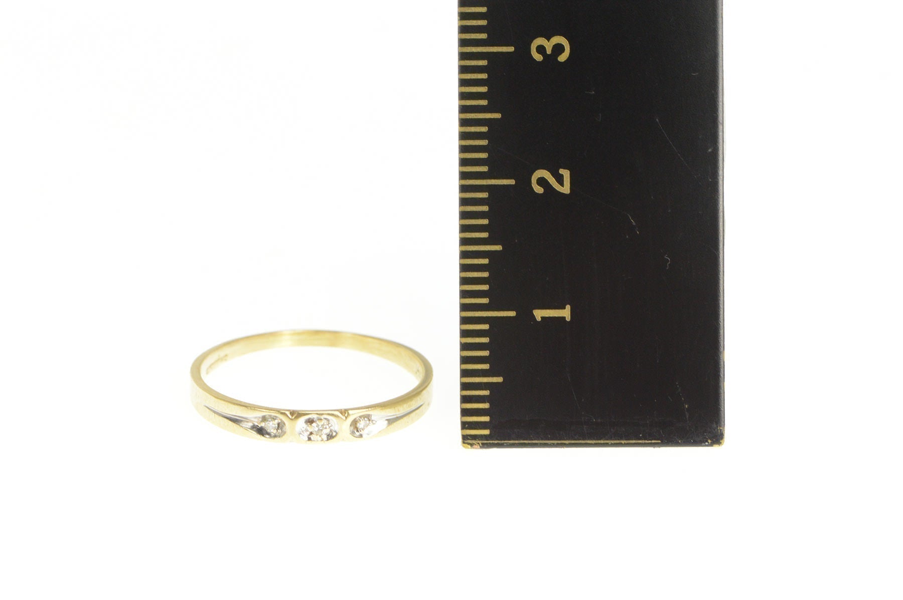 ·Item: 14K Diamond Three Stone Simple Wedding Band Ring Size 6.75 Yellow Gold