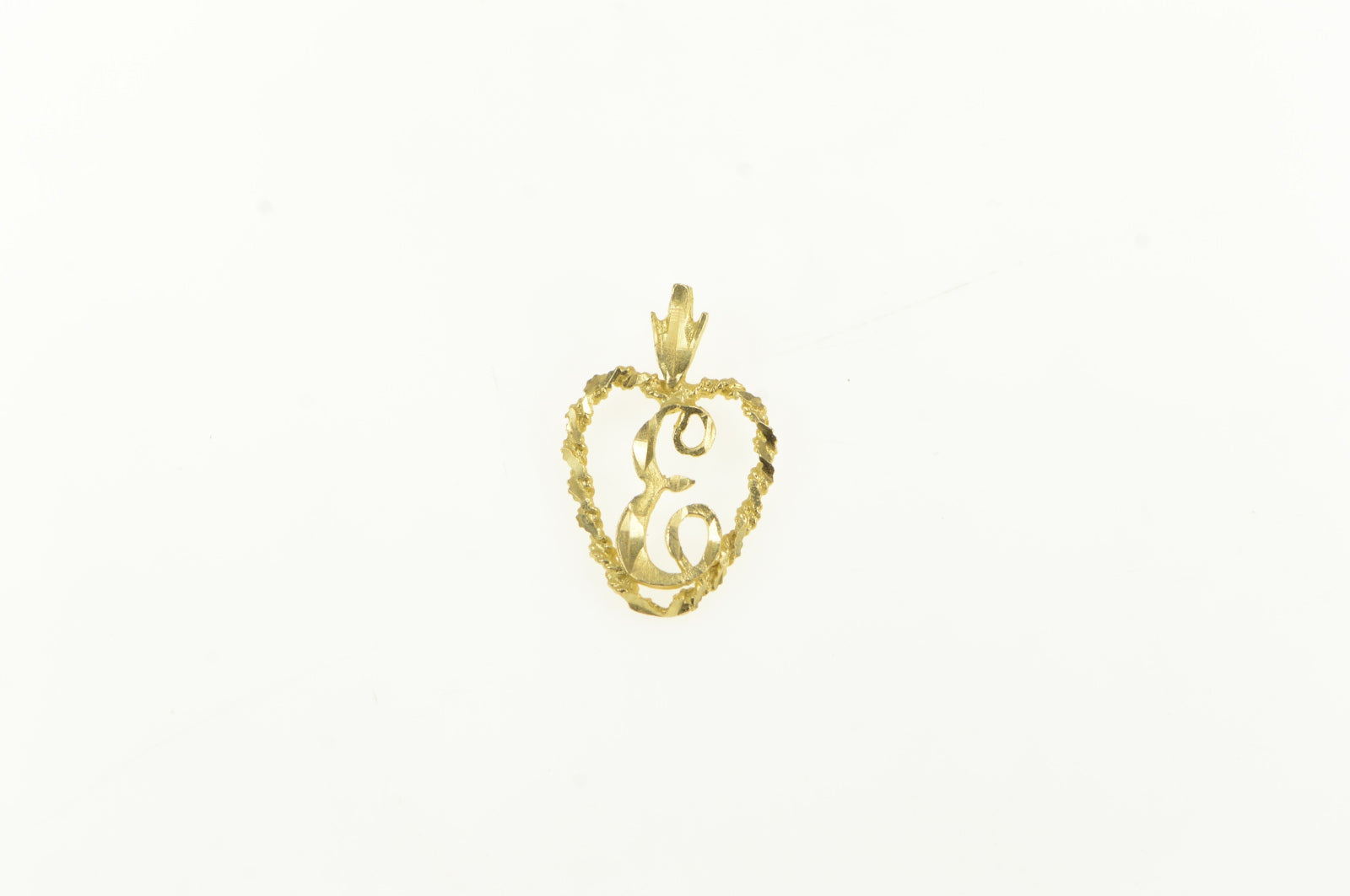 ·Item: 14K E Cursive Letter Name Initial Heart Valentine Charm/Pendant Yellow Gold