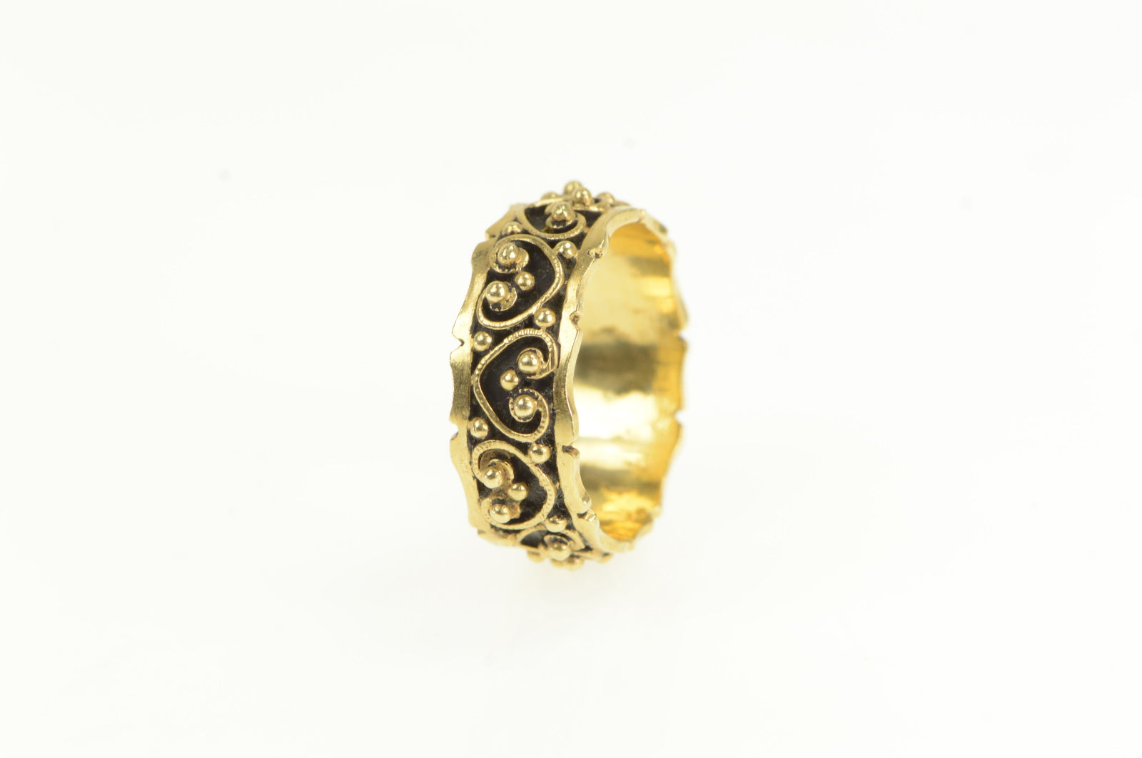 ·Item: 14K Elaborate Heart Granulated 7.9mm Wedding Band Ring Size 8 Yellow Gold