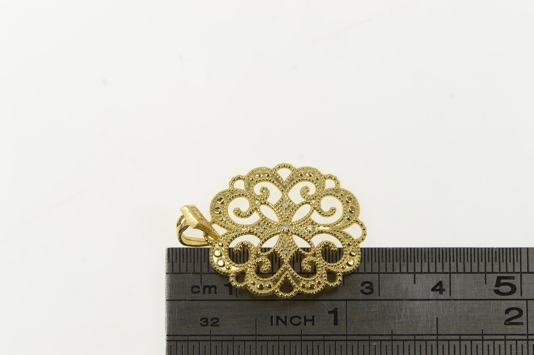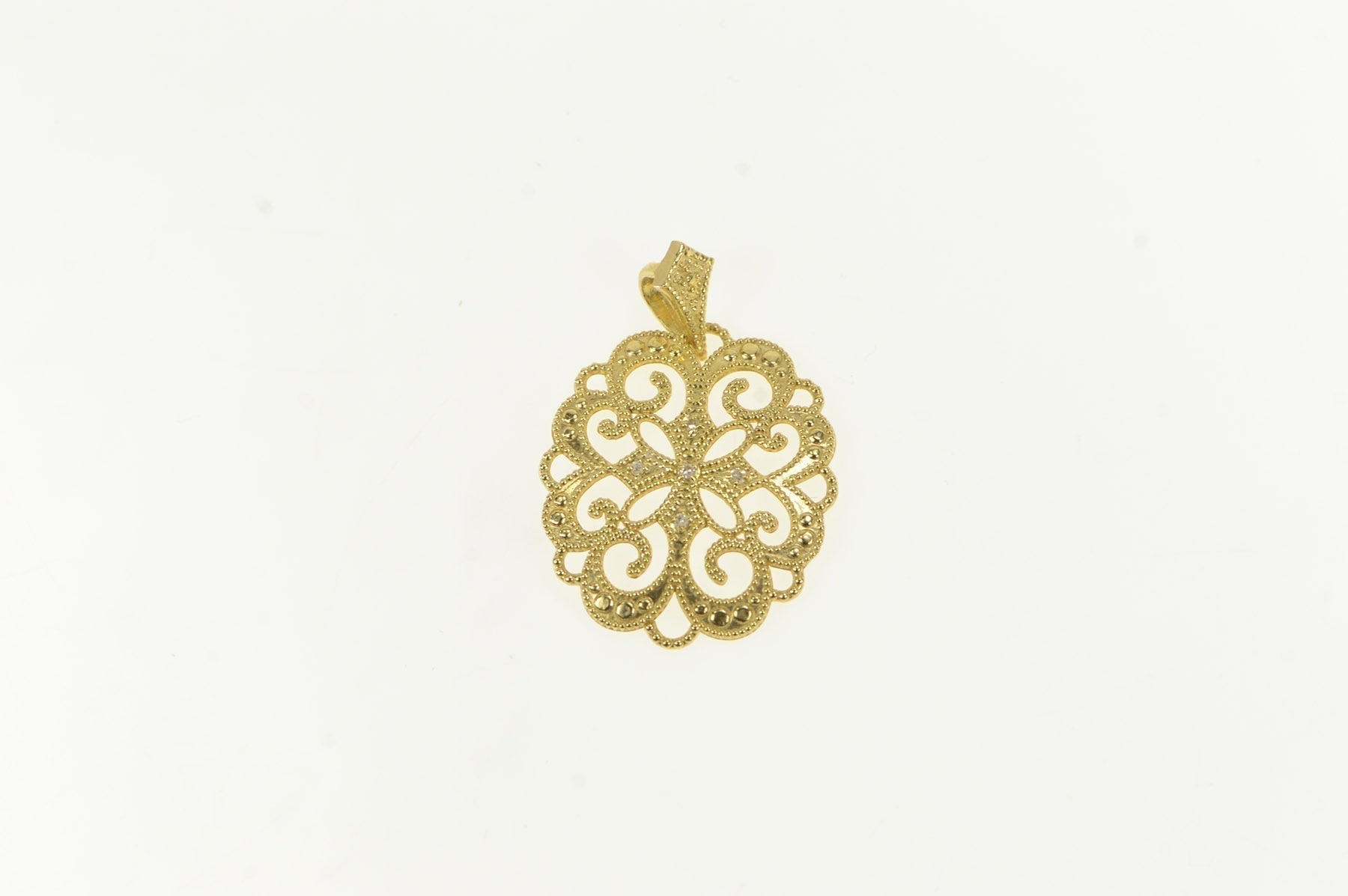·Item: 14K Elaborate Scroll Granulated Statement Filigree Pendant Yellow Gold