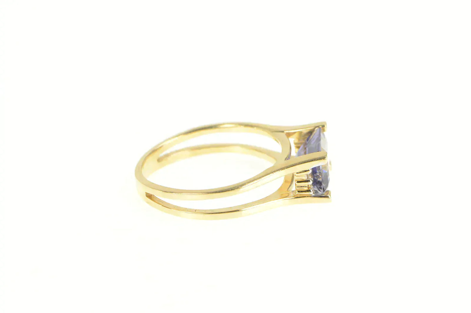 ·Item: 14K Emerald Cut Amethyst Diamond Accent Squared Ring Size 7 Yellow Gold