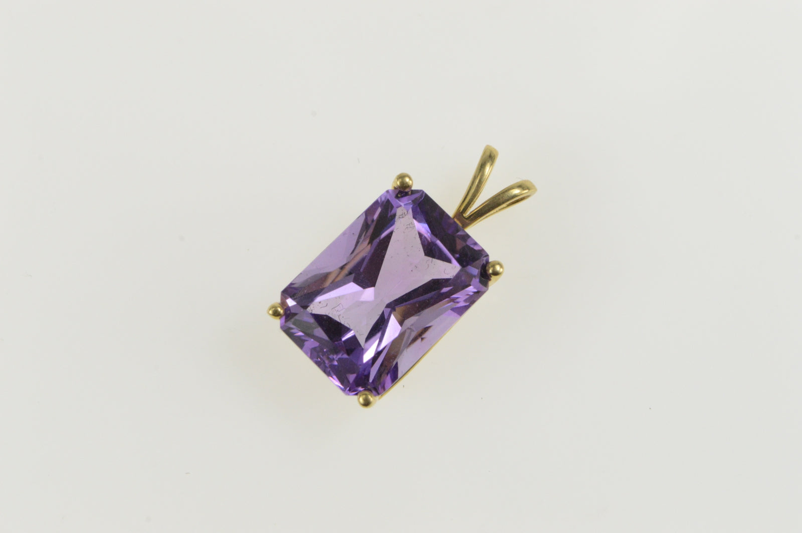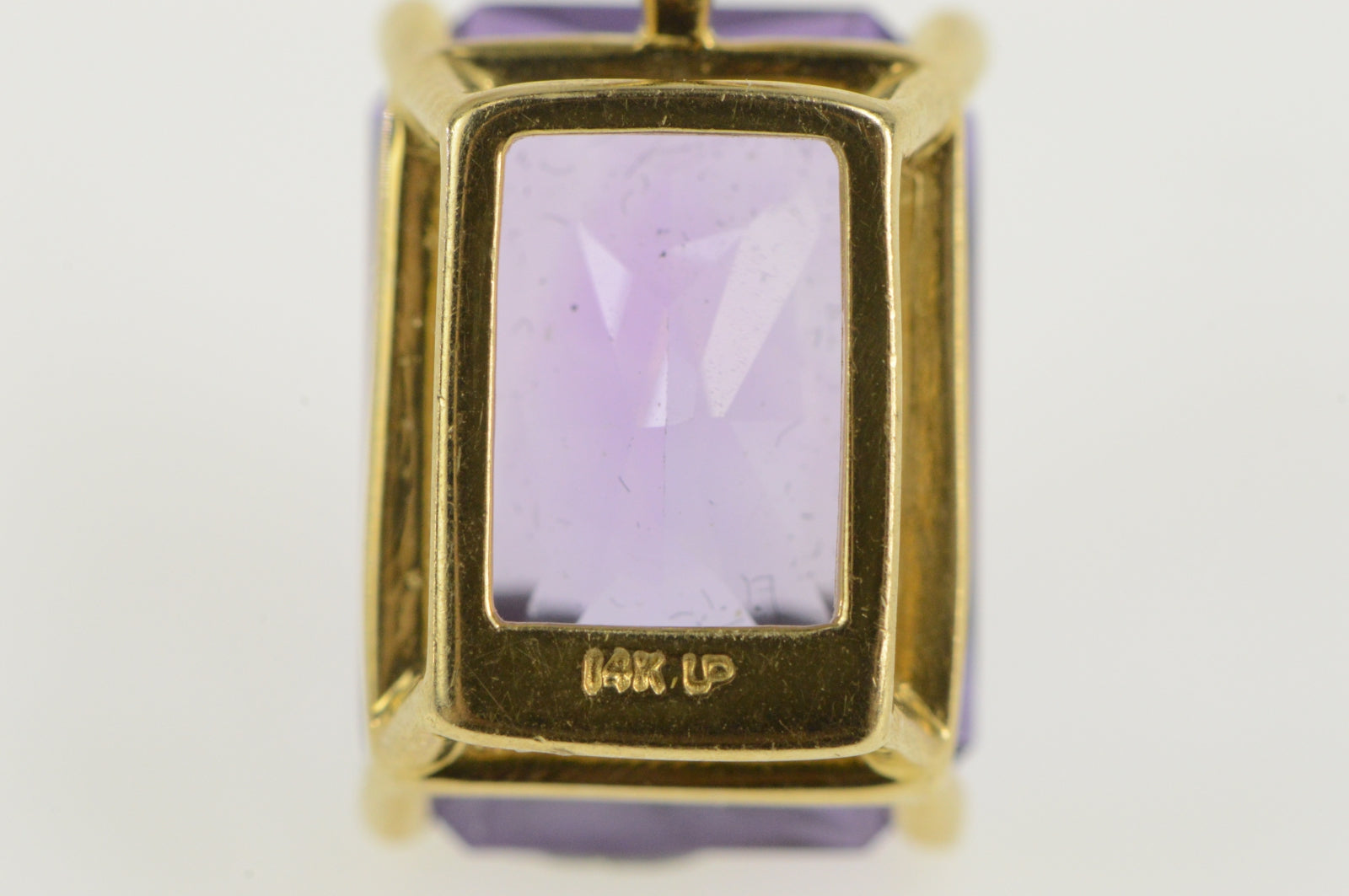 ·Item: 14K Emerald Cut Amethyst Solitaire Statement Pendant Yellow Gold