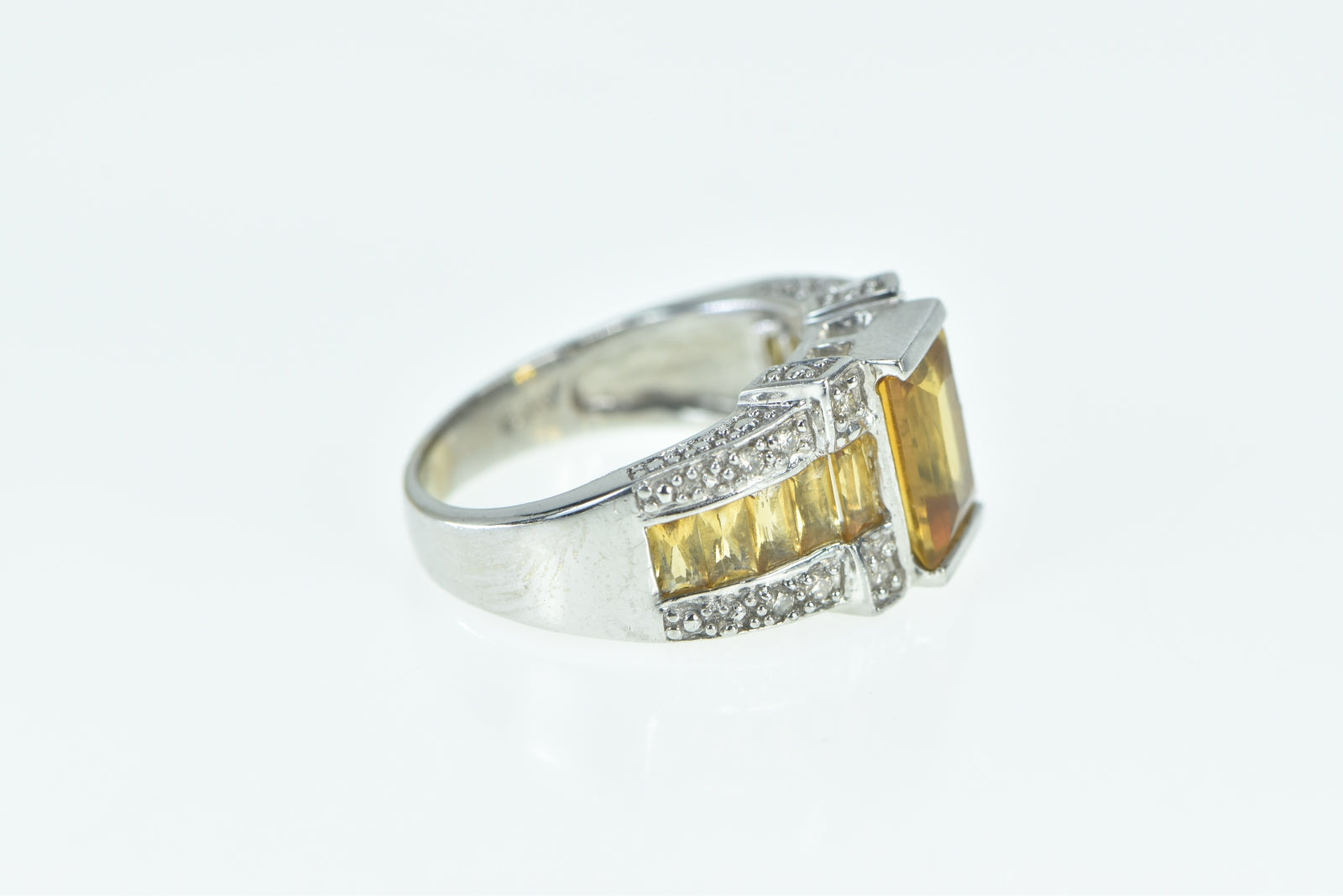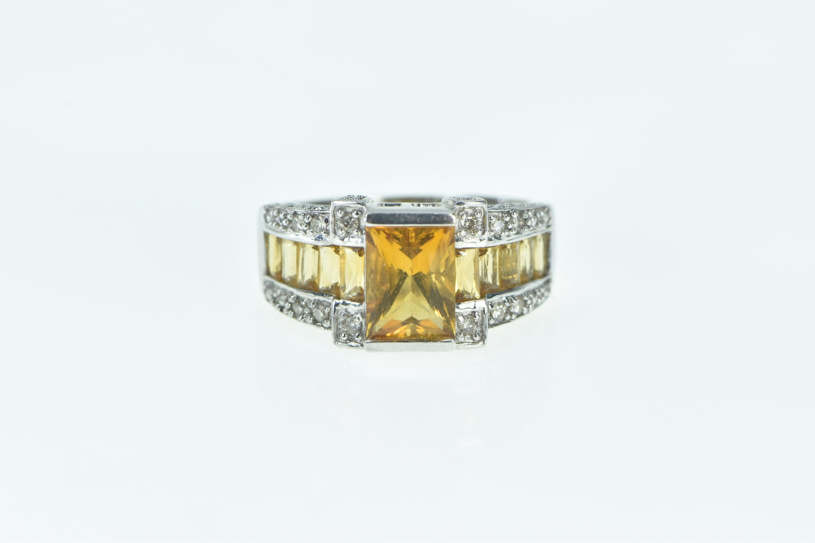 ·Item: 14K Emerald Cut Citrine Diamond Statement Ring Size 5 White Gold