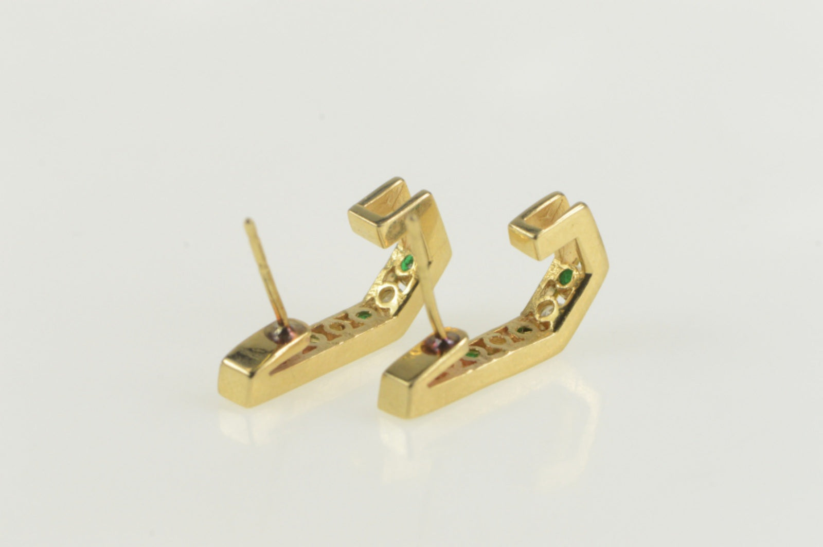 ·Item: 14K Emerald Diamond Accent Squared Bar Hoop Earrings Yellow Gold