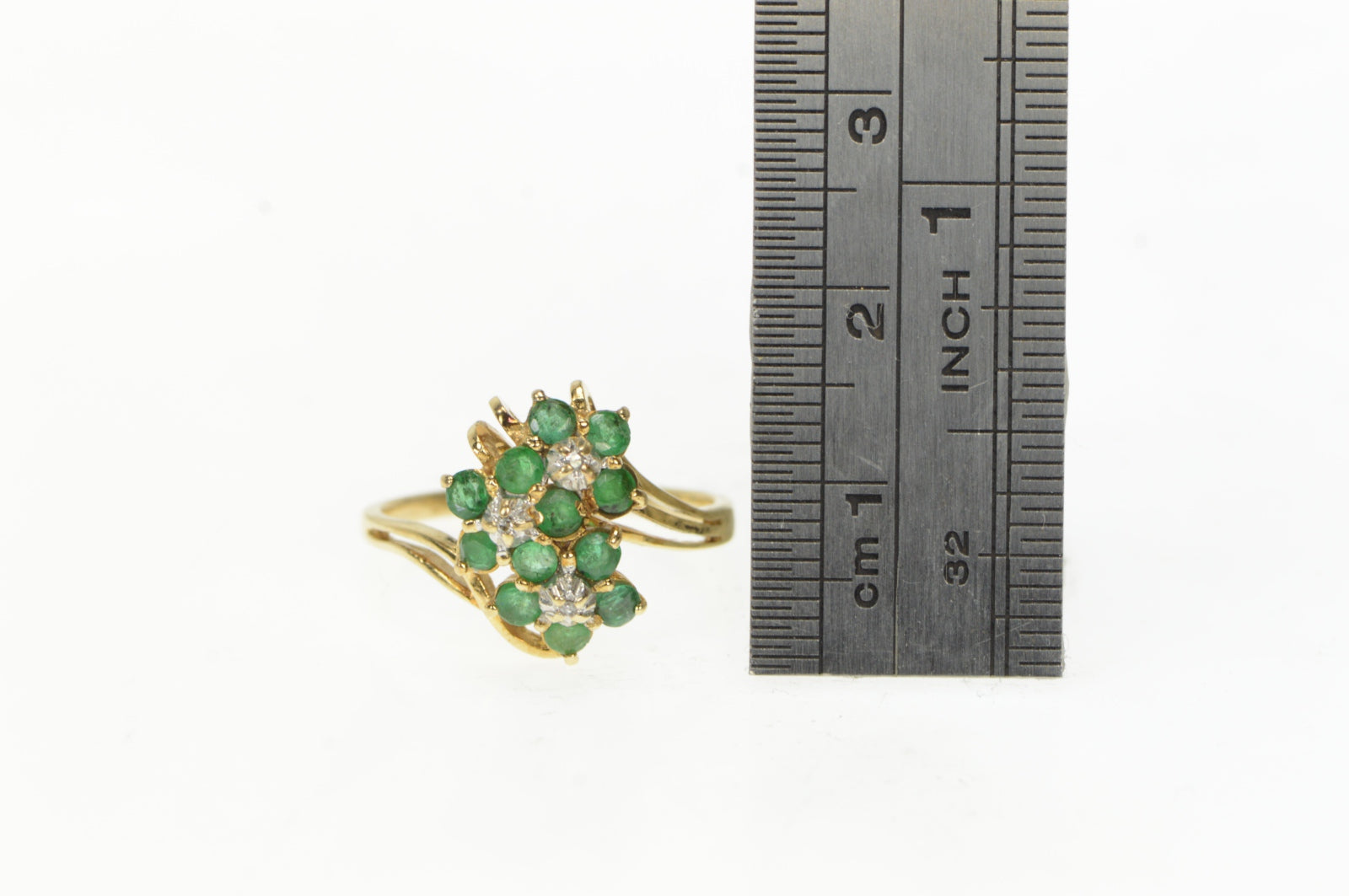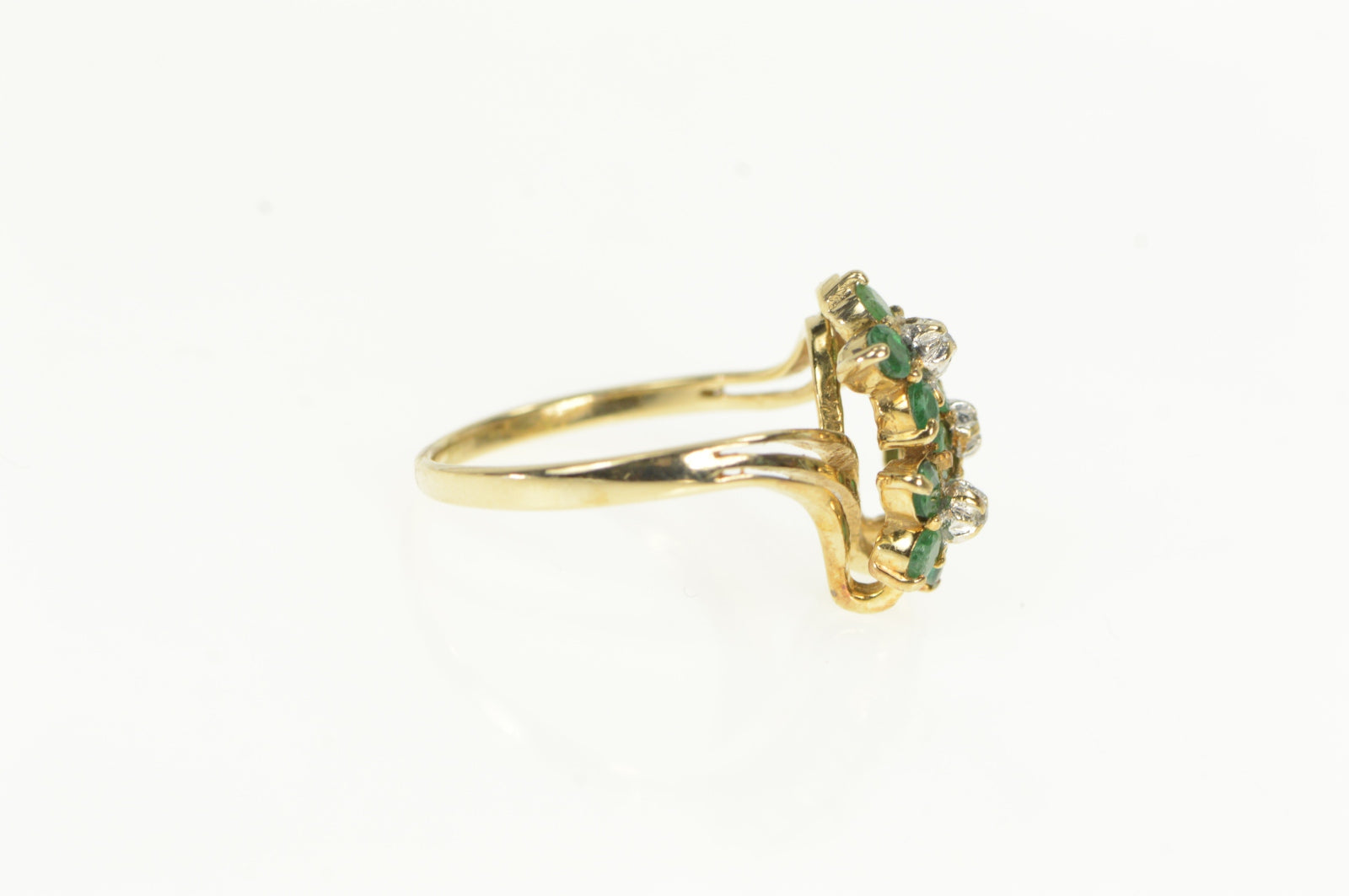 ·Item: 14K Emerald Diamond Flower Cluster Vintage Ring Size 6 Yellow Gold