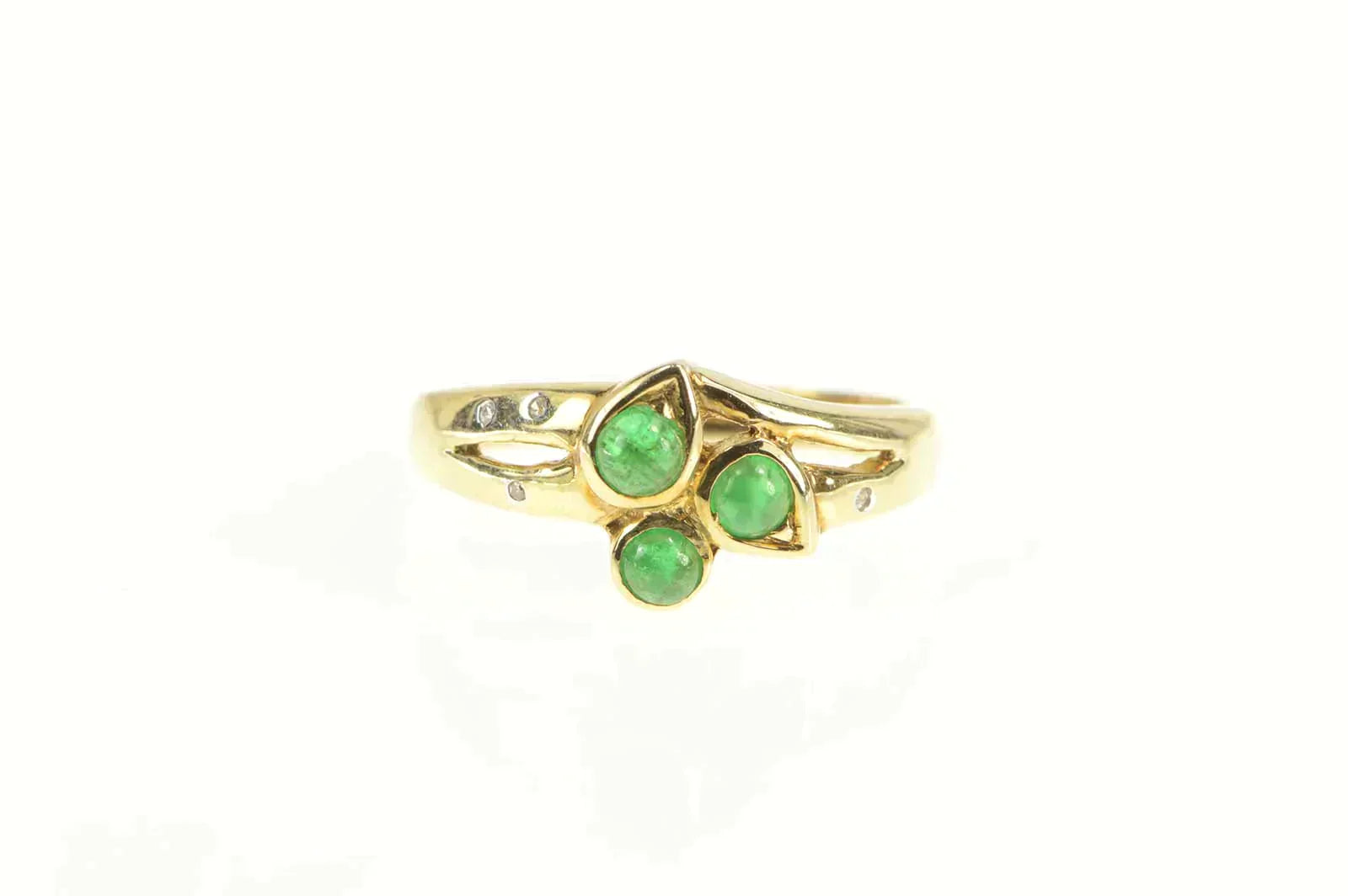 ·Item: 14K Emerald Leaf Diamond Cluster Vine Motif Ring Size 6.25 Yellow Gold