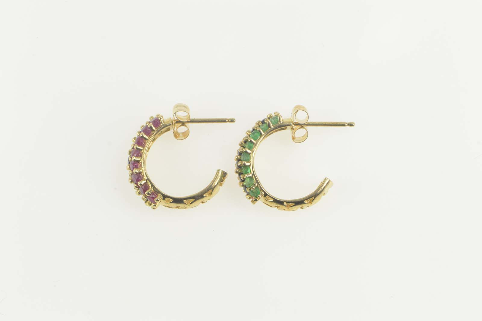 ·Item: 14K Emerald Ruby Sapphire Encrusted Semi Hoop Earrings Yellow Gold