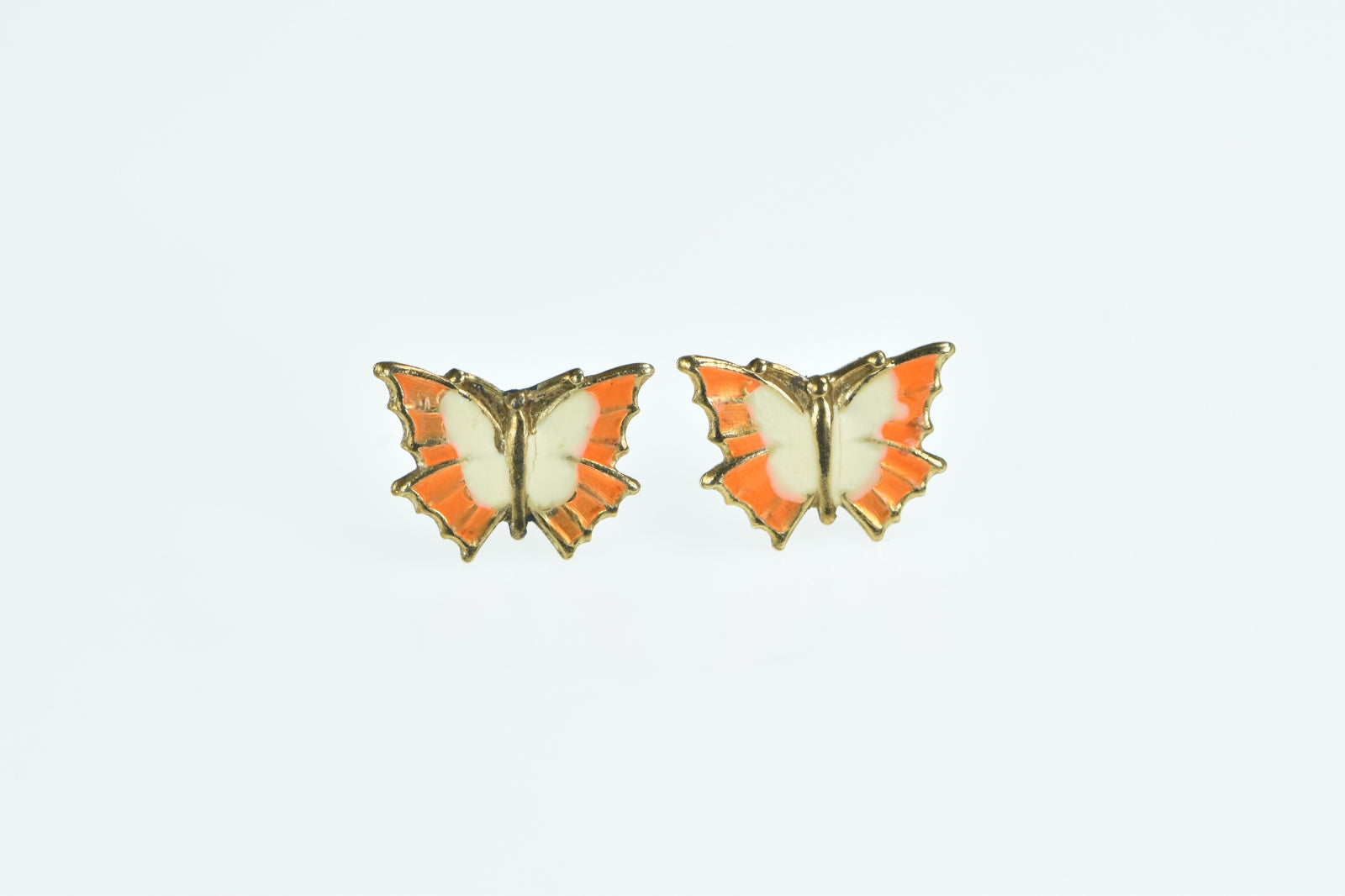 ·Item: 14K Enamel Ornate Orange Butterfly Stud Earrings Yellow Gold