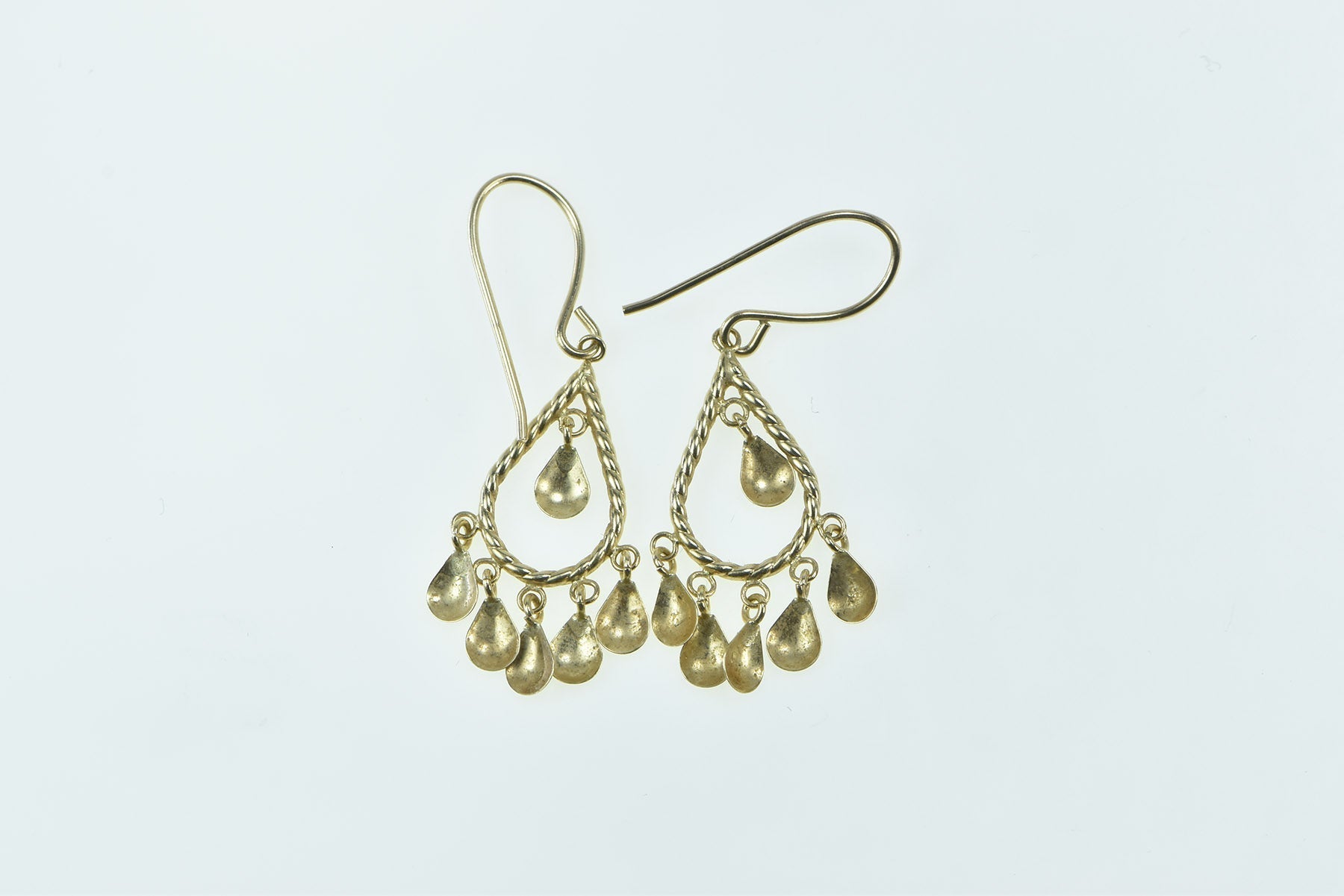 14K Fringe Tassel Oval Tear Drop Vintage Earrings Yellow Gold