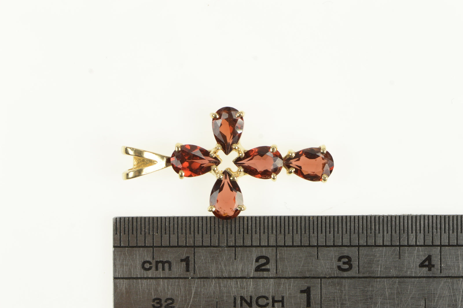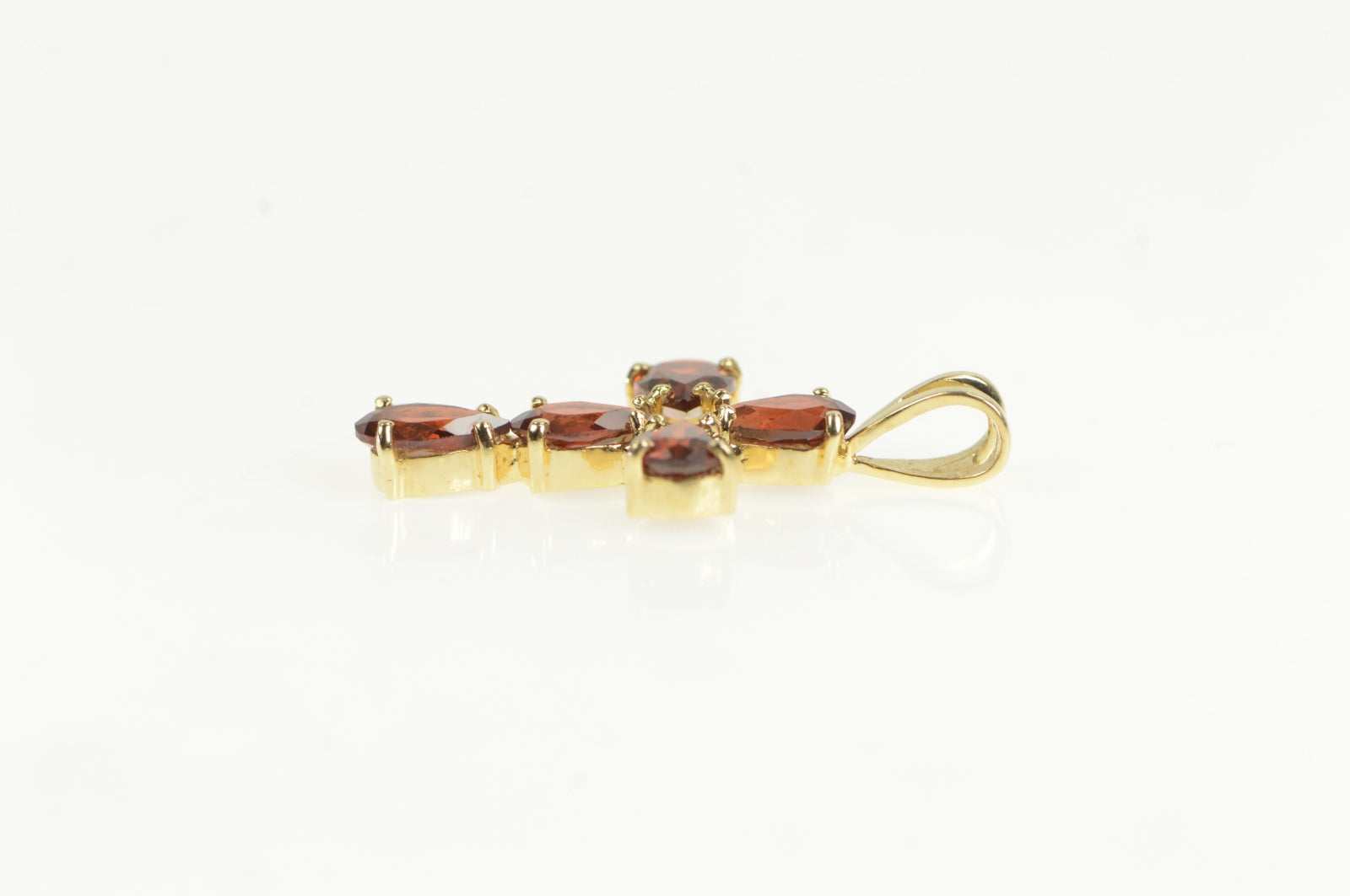 ·Item: 14K Garnet Inset Cross Christian Faith Symbol Pendant Yellow Gold