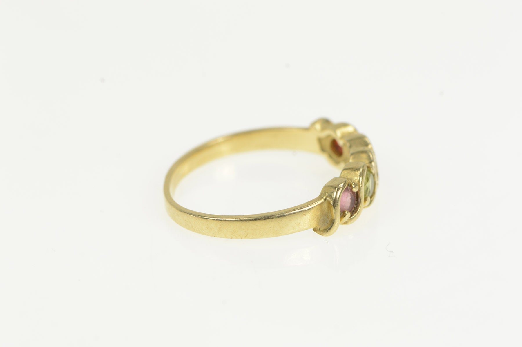 ·Item: 14K Garnet Peridot Emerald Pink Topaz Wavy Band Ring Size 8 Yellow Gold