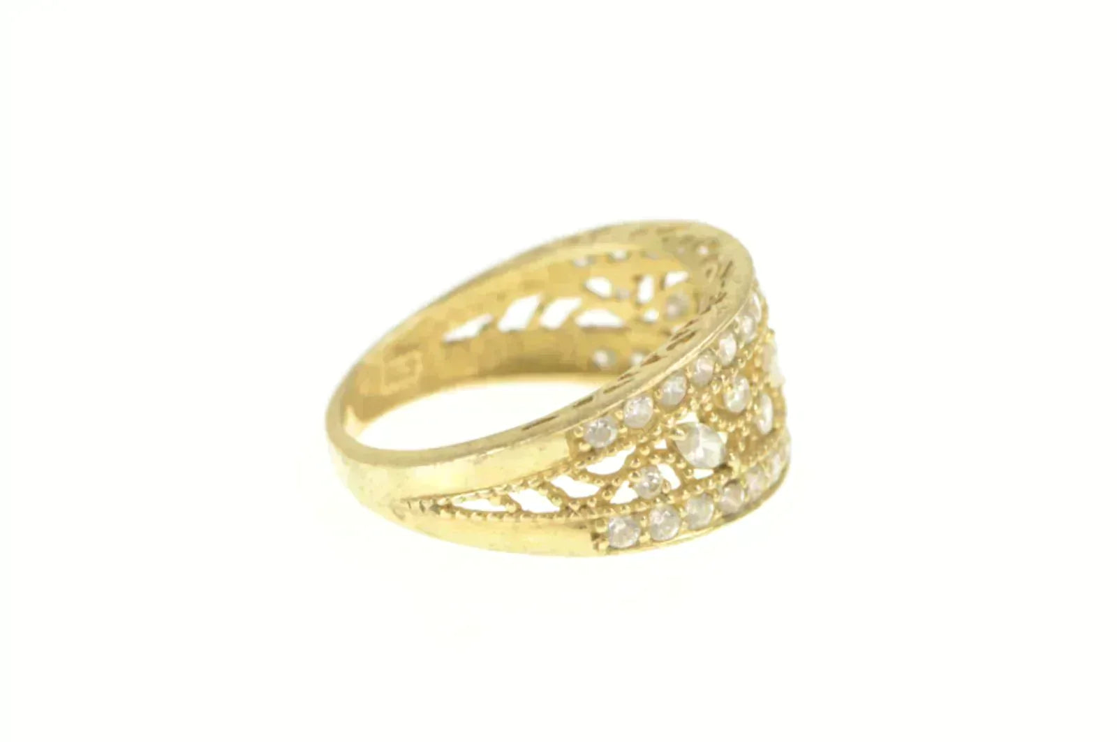 ·Item: 14K Graduated Floral Cubic Zirconia Ornate Statement Ring Size 7 Yellow Gold