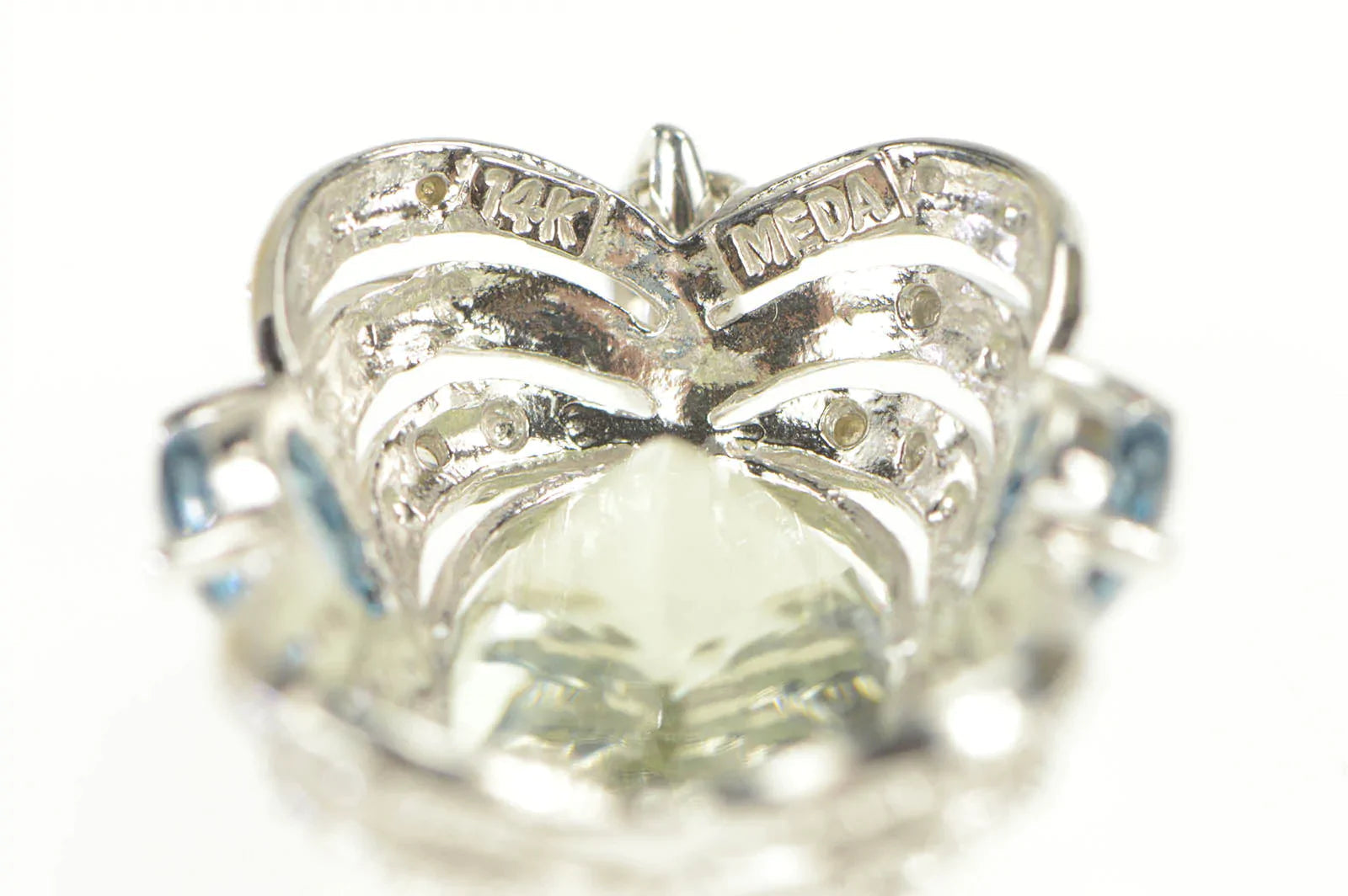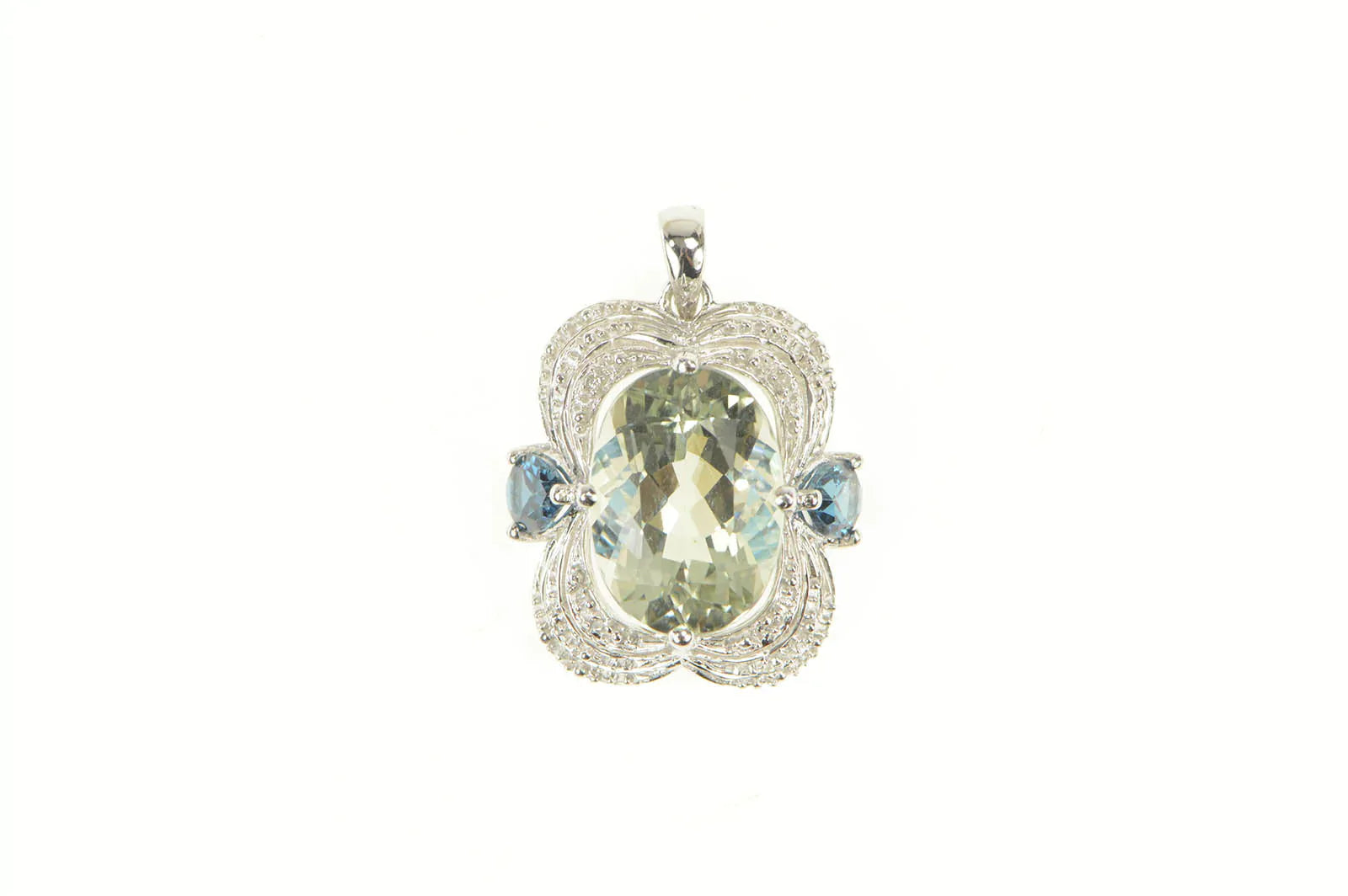 ·Item: 14K Green Amethyst Topaz Diamond Elaborate Statement Pendant White Gold