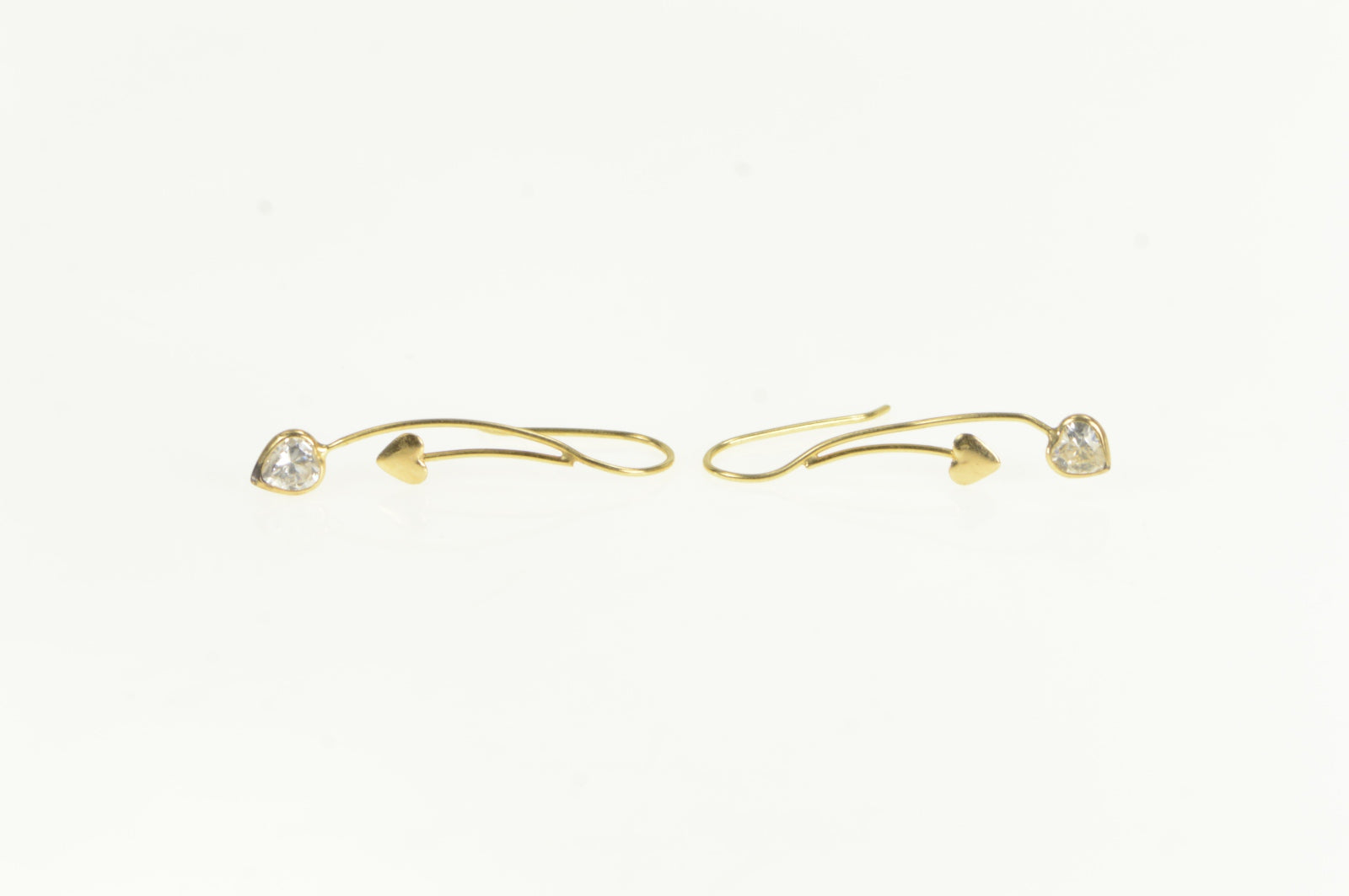 ·Item: 14K Heart Fringe Dangle Curved Bar CZ Earrings Yellow Gold