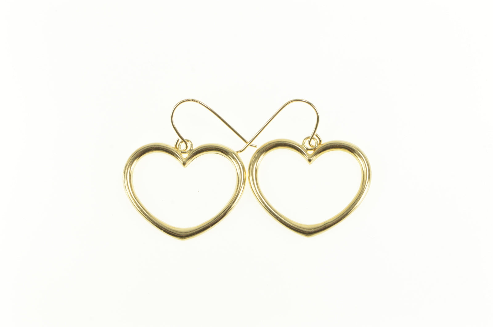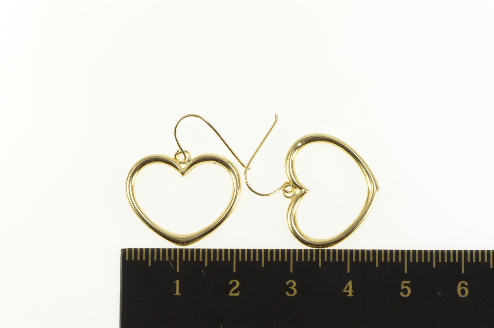 14K Heart Puffy Dangle Charm Hook Love Symbol Earrings Yellow Gold