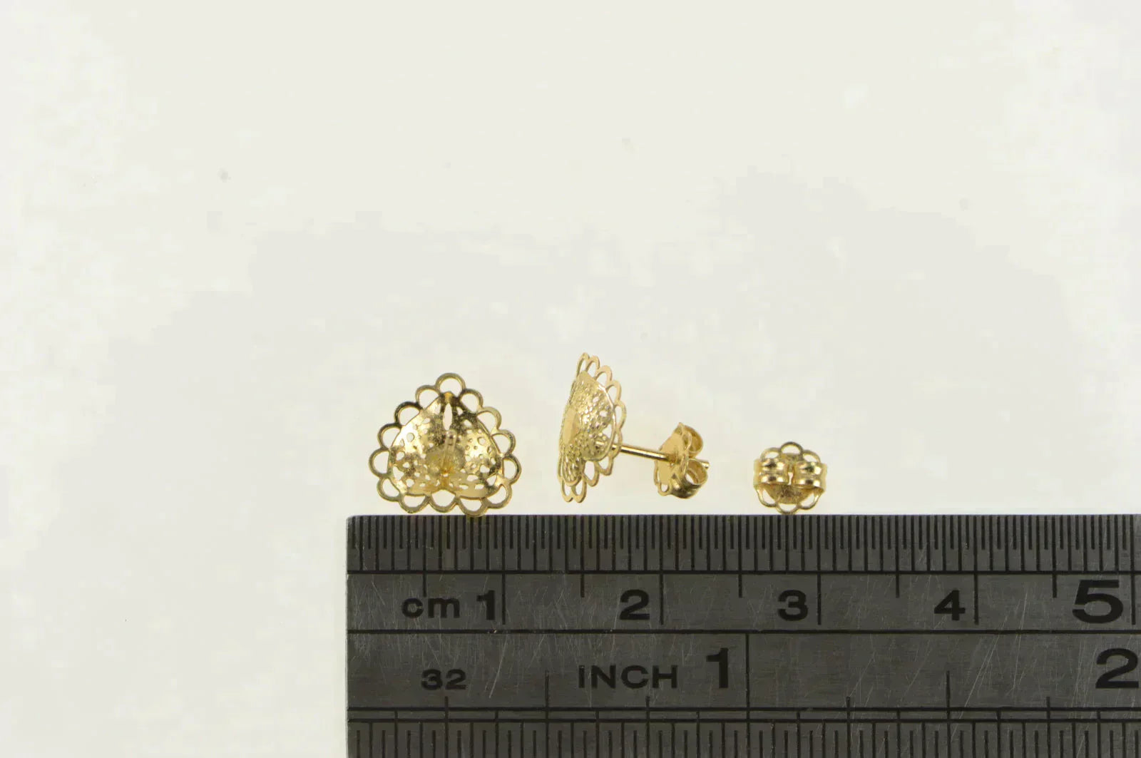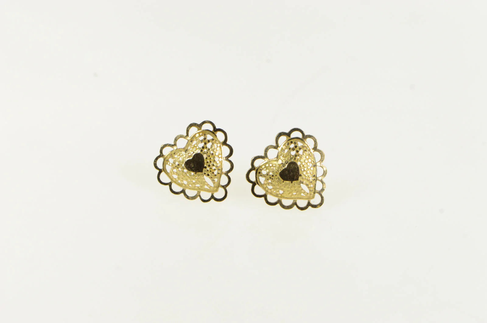·Item: 14K Heart Scalloped Filigree Love Symbol Stud Earrings Yellow Gold