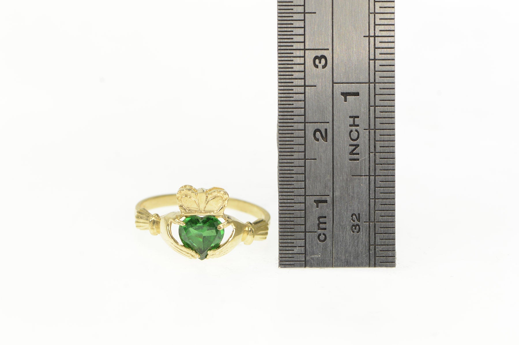 ·Item: 14K Irish Claddagh Syn. Emerald Heart Loyalty Ring Size 7.25 Yellow Gold