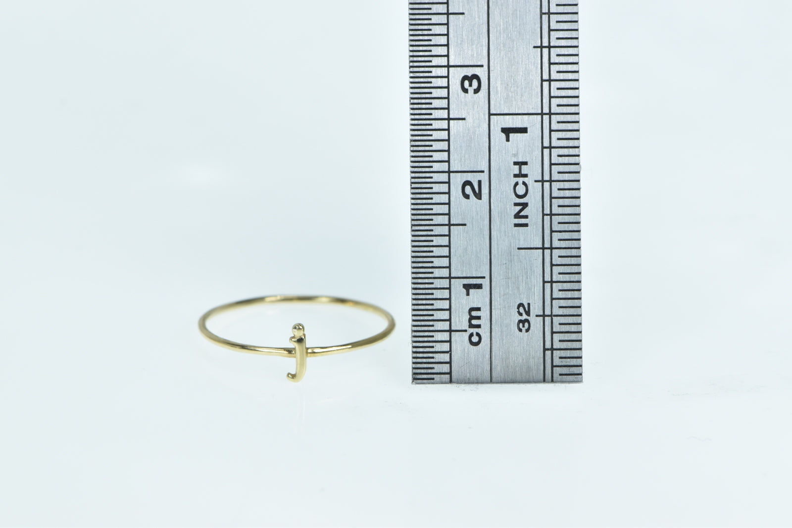 ·Item: 14K J Cursive Letter Initial Monogram Stackable Ring Size 7 Yellow Gold
