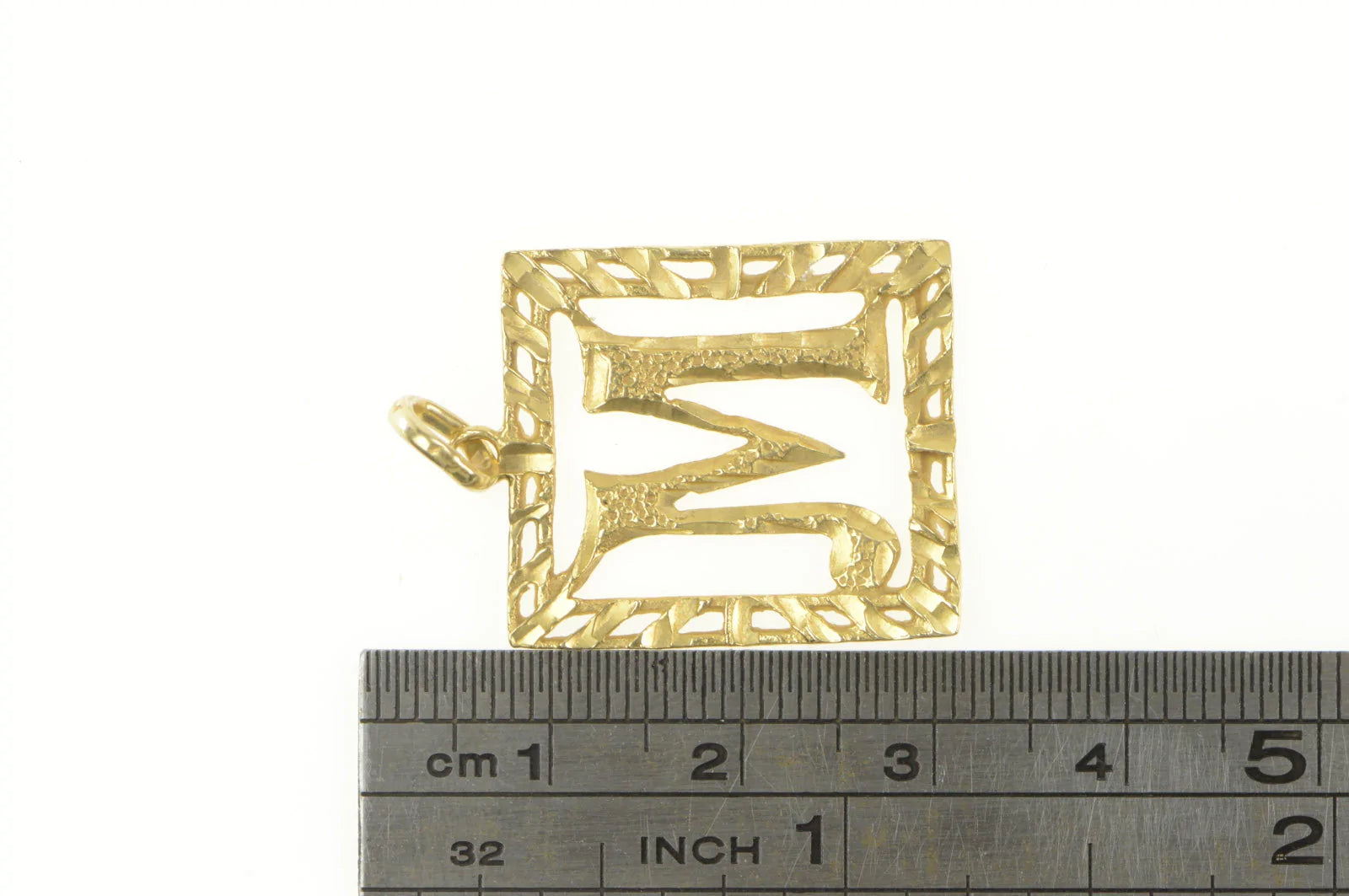 ·Item: 14K M Monogram Letter Square Initial Name Pendant Yellow Gold