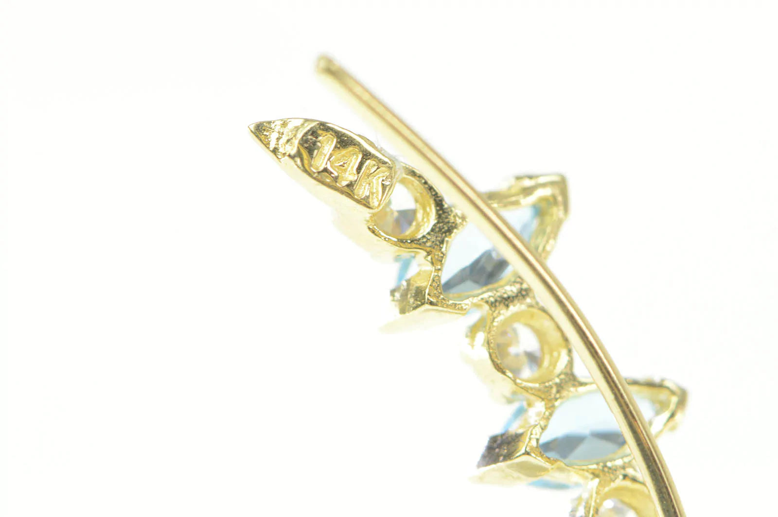 ·Item: 14K Marquise Blue Topaz Curved CZ Drop Dangle Earrings Yellow Gold