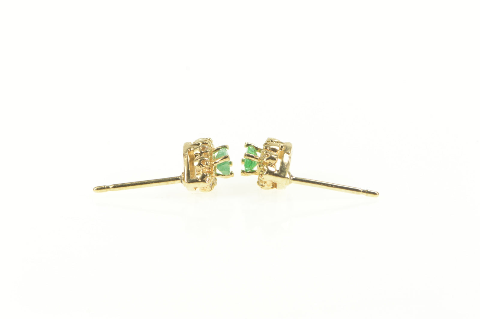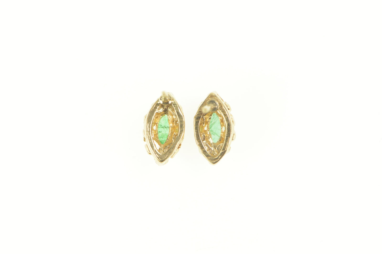 ·Item: 14K Marquise Natural Emerald Diamond Halo Stud Earrings Yellow Gold