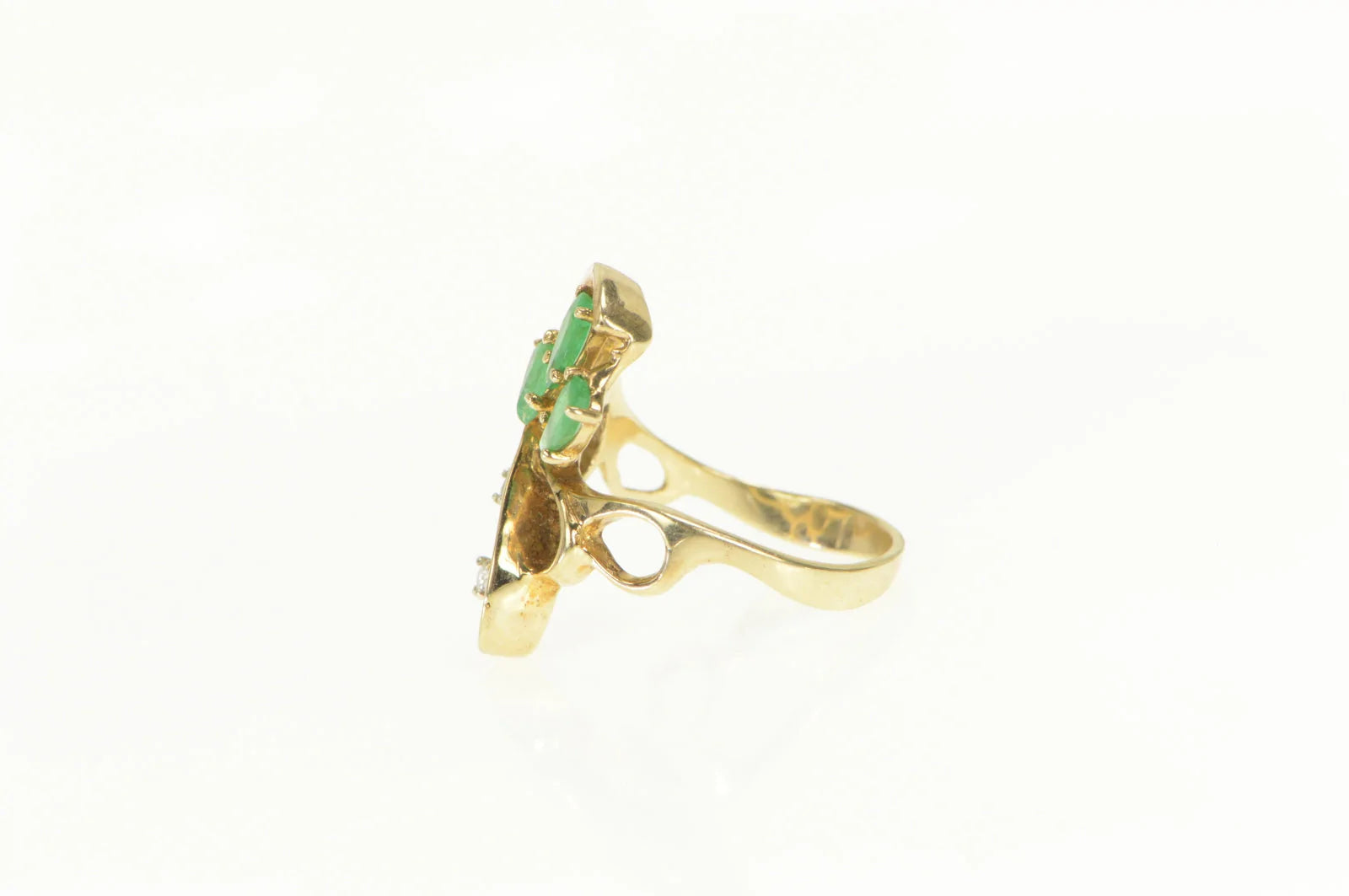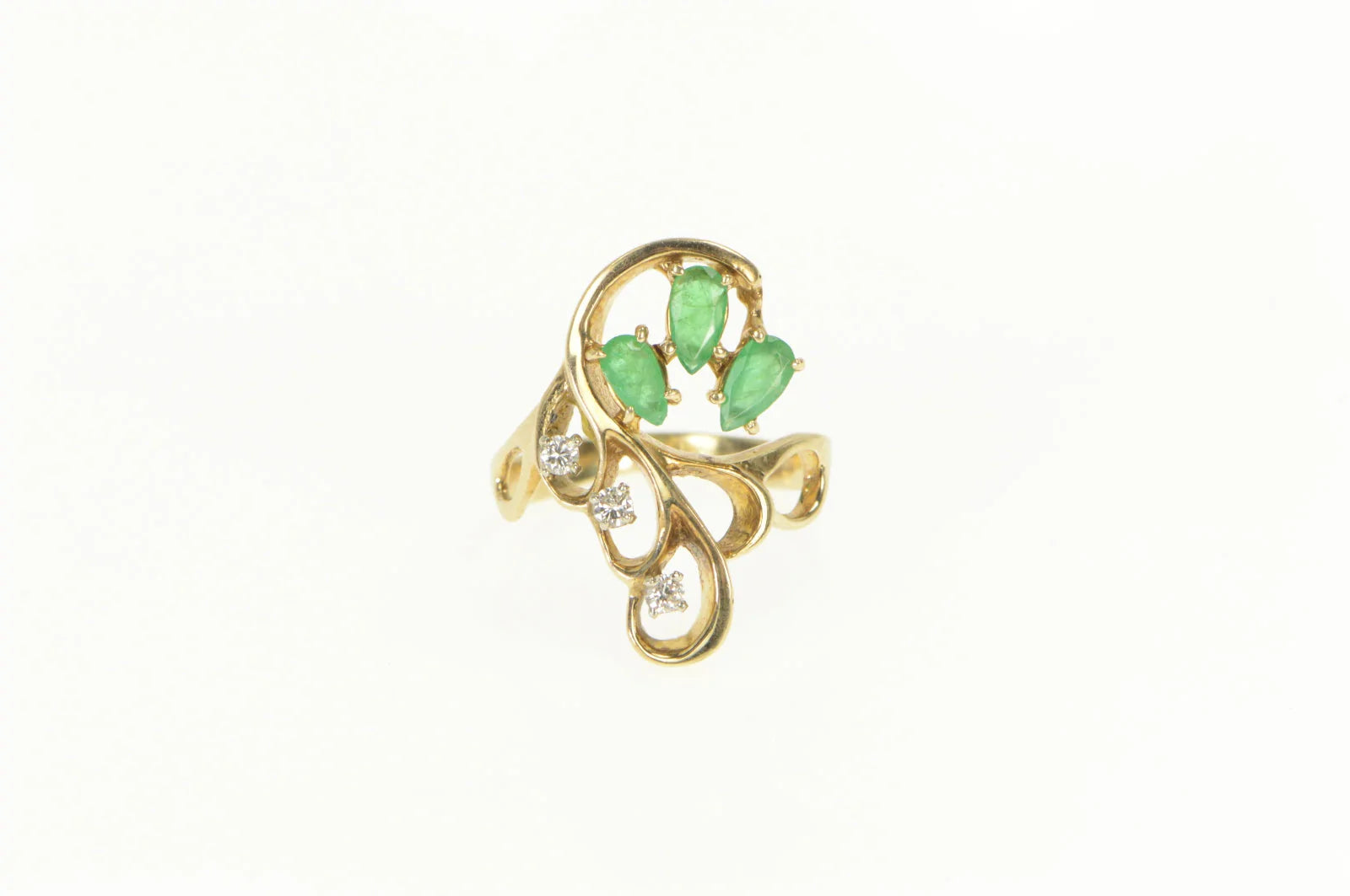 ·Item: 14K Natural Emerald Diamond Vintage Swirl Cluster Ring Size 6.75 Yellow Gold