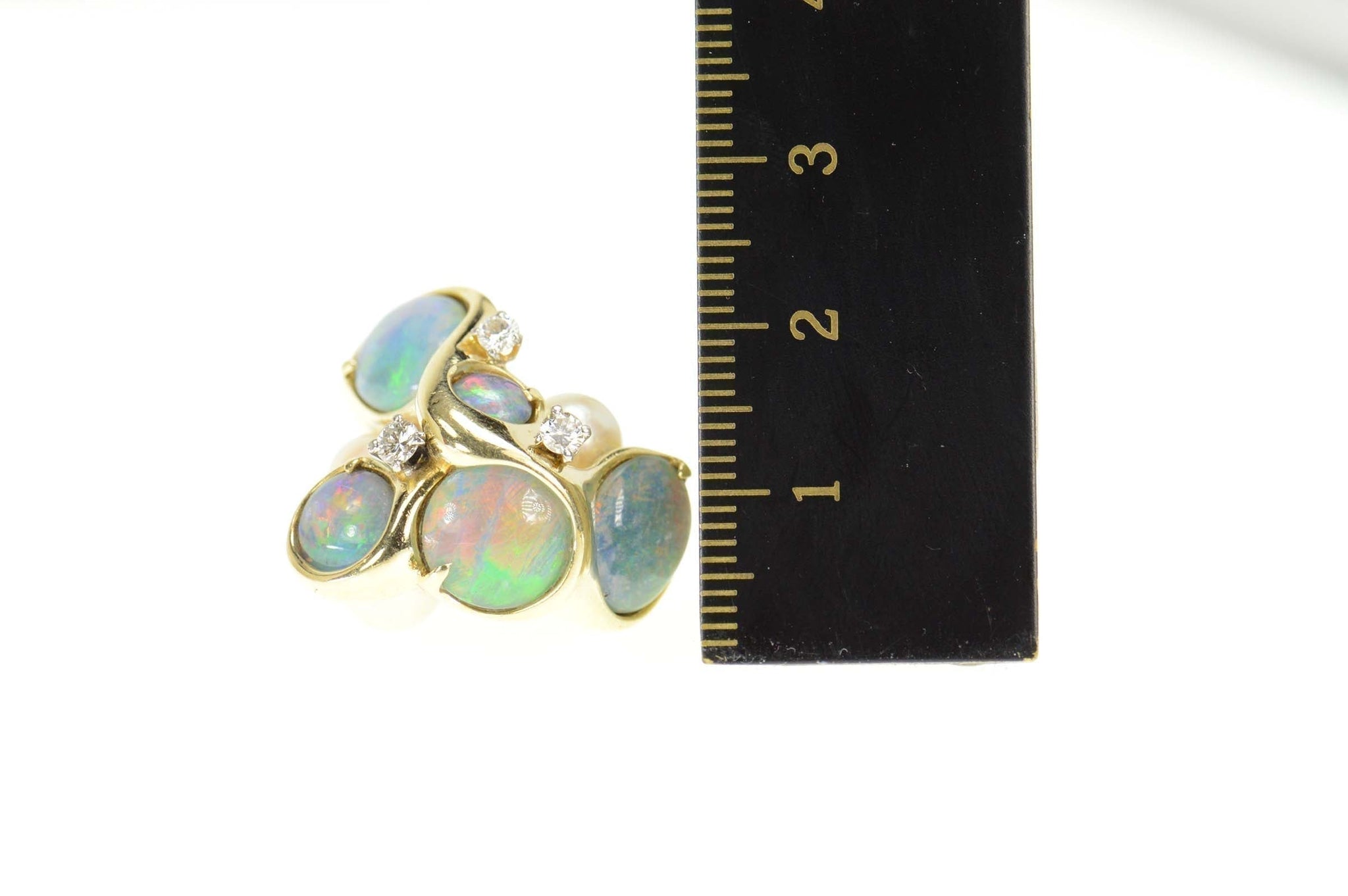·Item: 14K Natural Opal Diamond Accent Pearl Cluster Ring Size 8.75 Yellow Gold