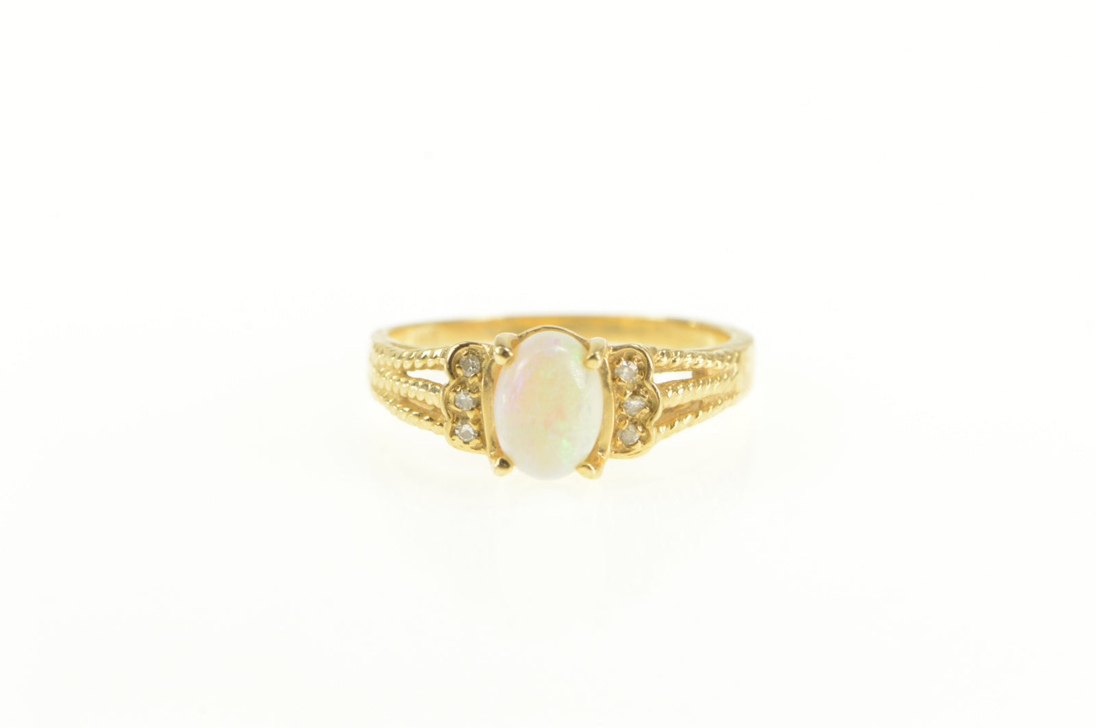 ·Item: 14K Natural Opal Diamond Cluster Accent Ring Size 6 Yellow Gold