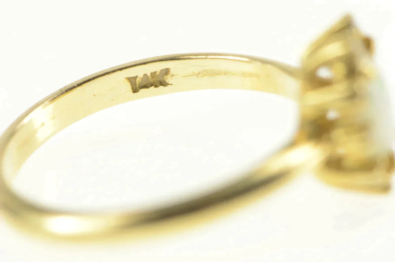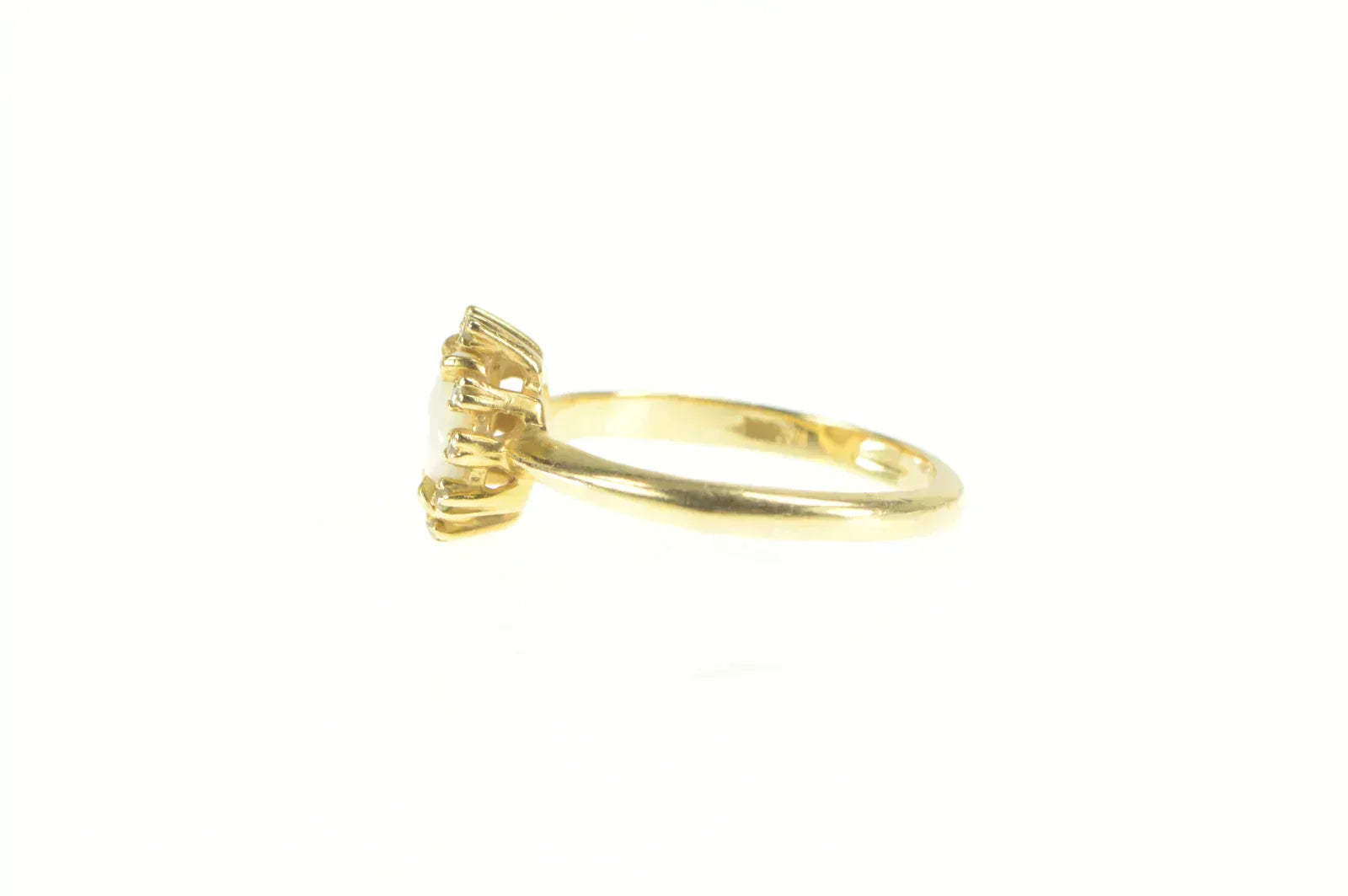 ·Item: 14K Natural Opal Diamond Halo Classic Statement Ring Size 5.75 Yellow Gold