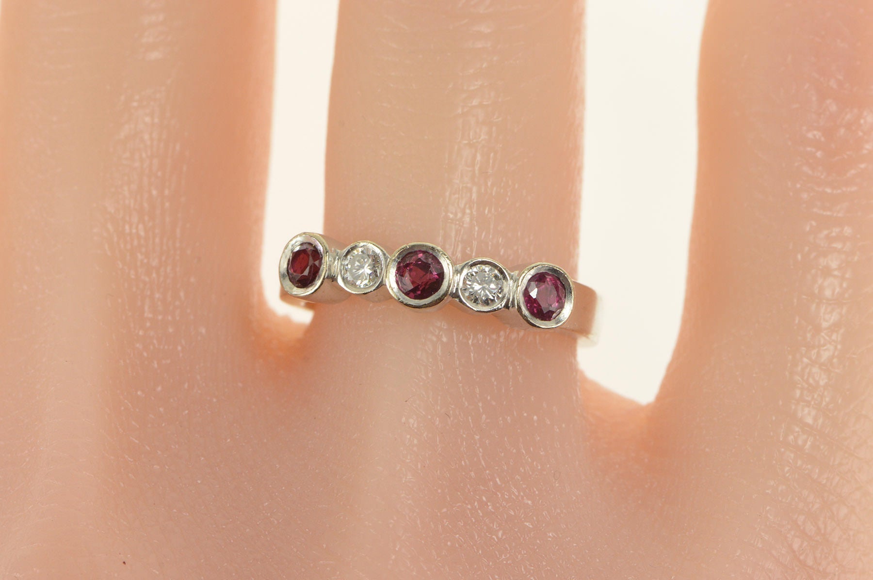 ·Item: 14K Natural Ruby Diamond Accent Wedding Band Ring Size 7 White Gold