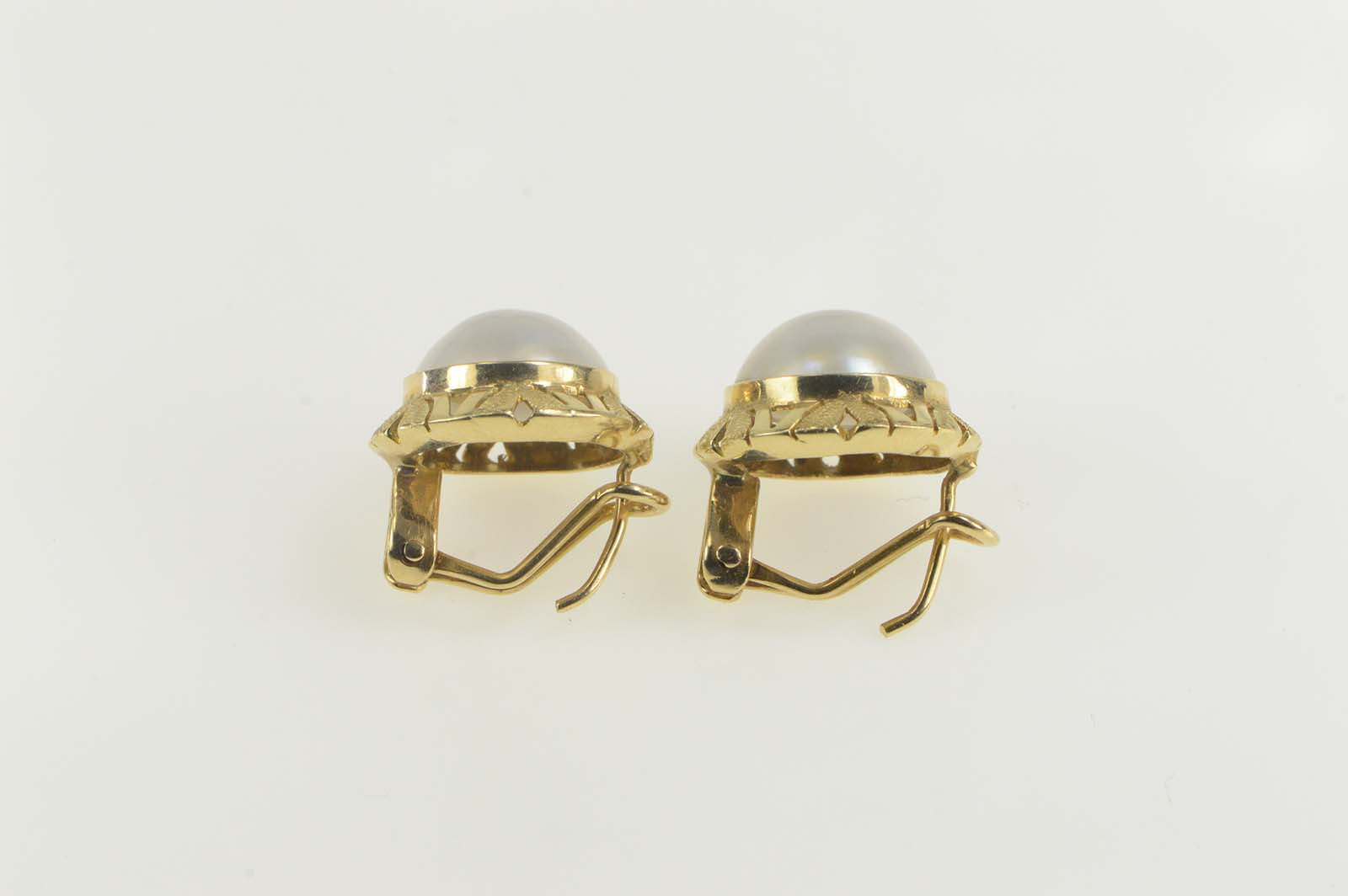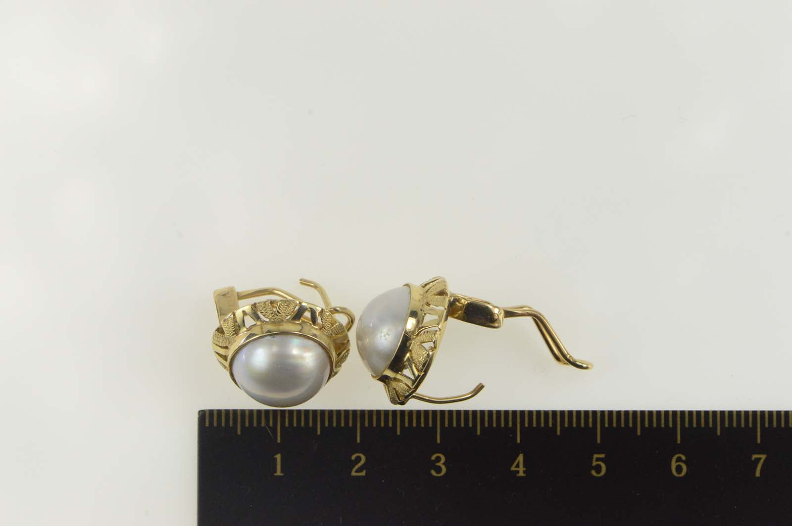 ·Item: 14K Ornate 1960's Retro Pearl French Clip Earrings Yellow Gold