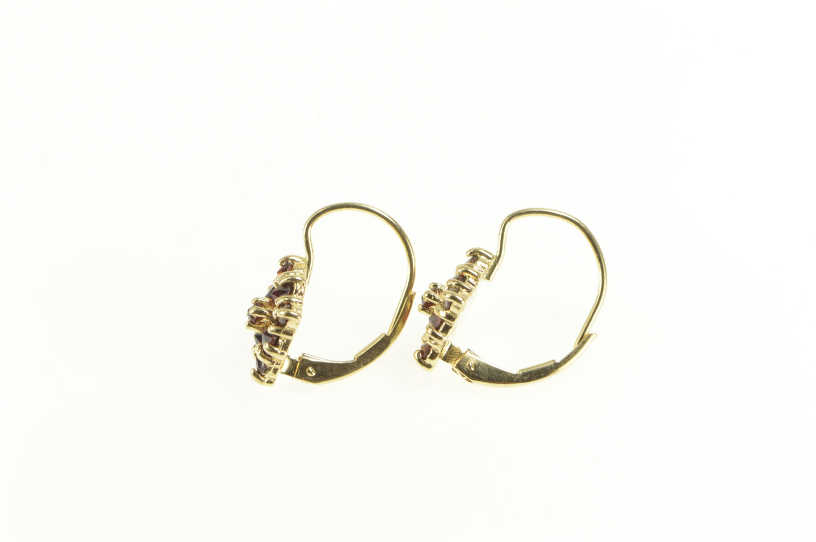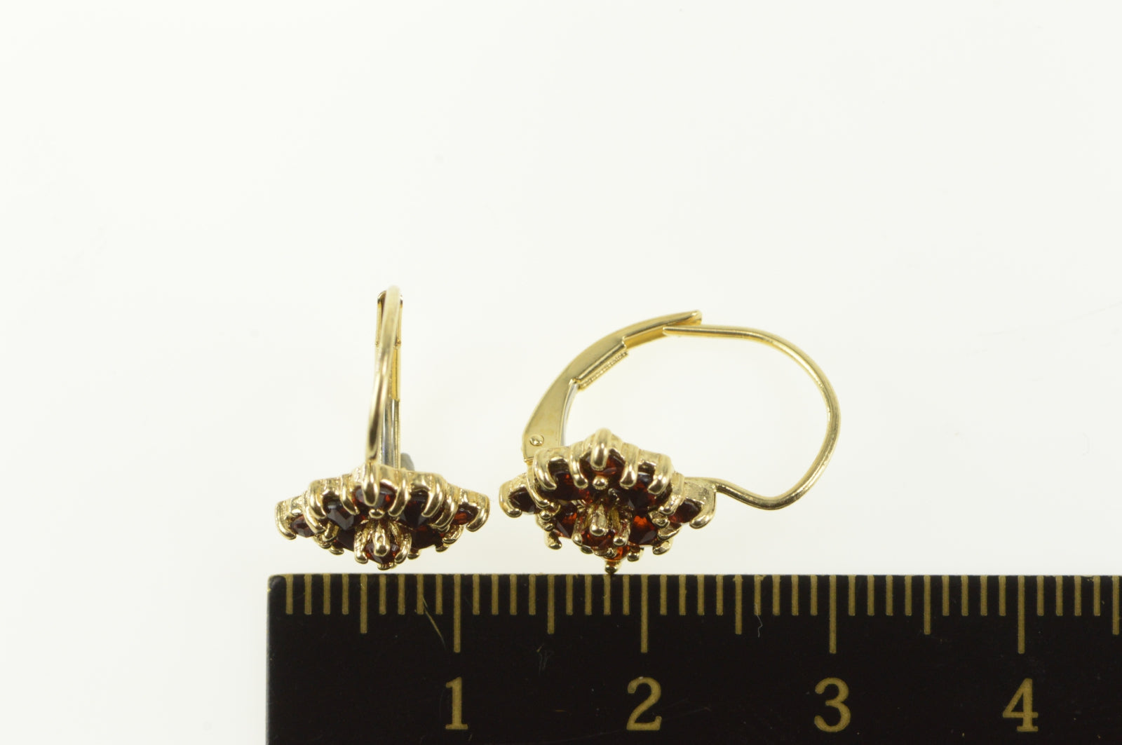 14K Ornate Garnet Squared Cluster Lever Back Earrings Yellow Gold