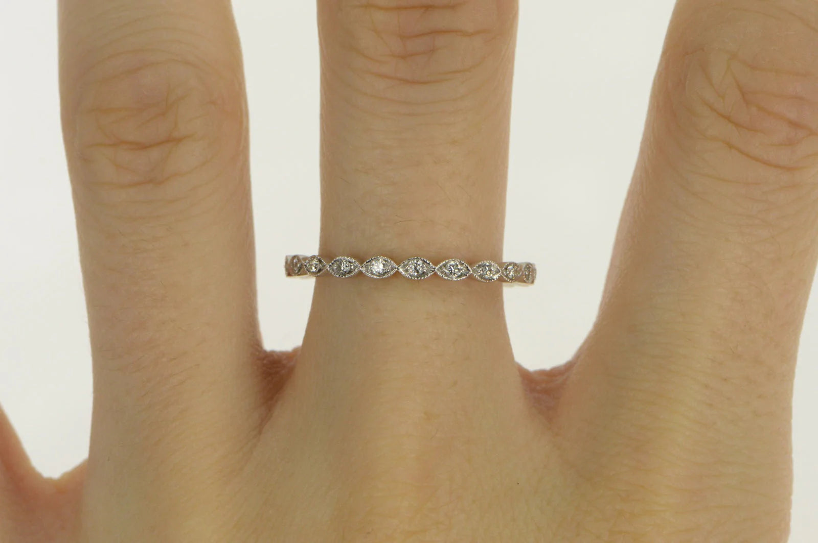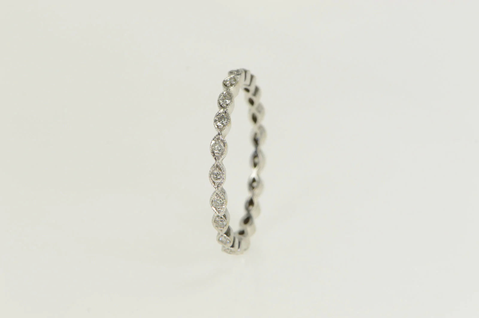·Item: 14K Ornate Scalloped Diamond Wedding Band Ring Size 9.75 White Gold