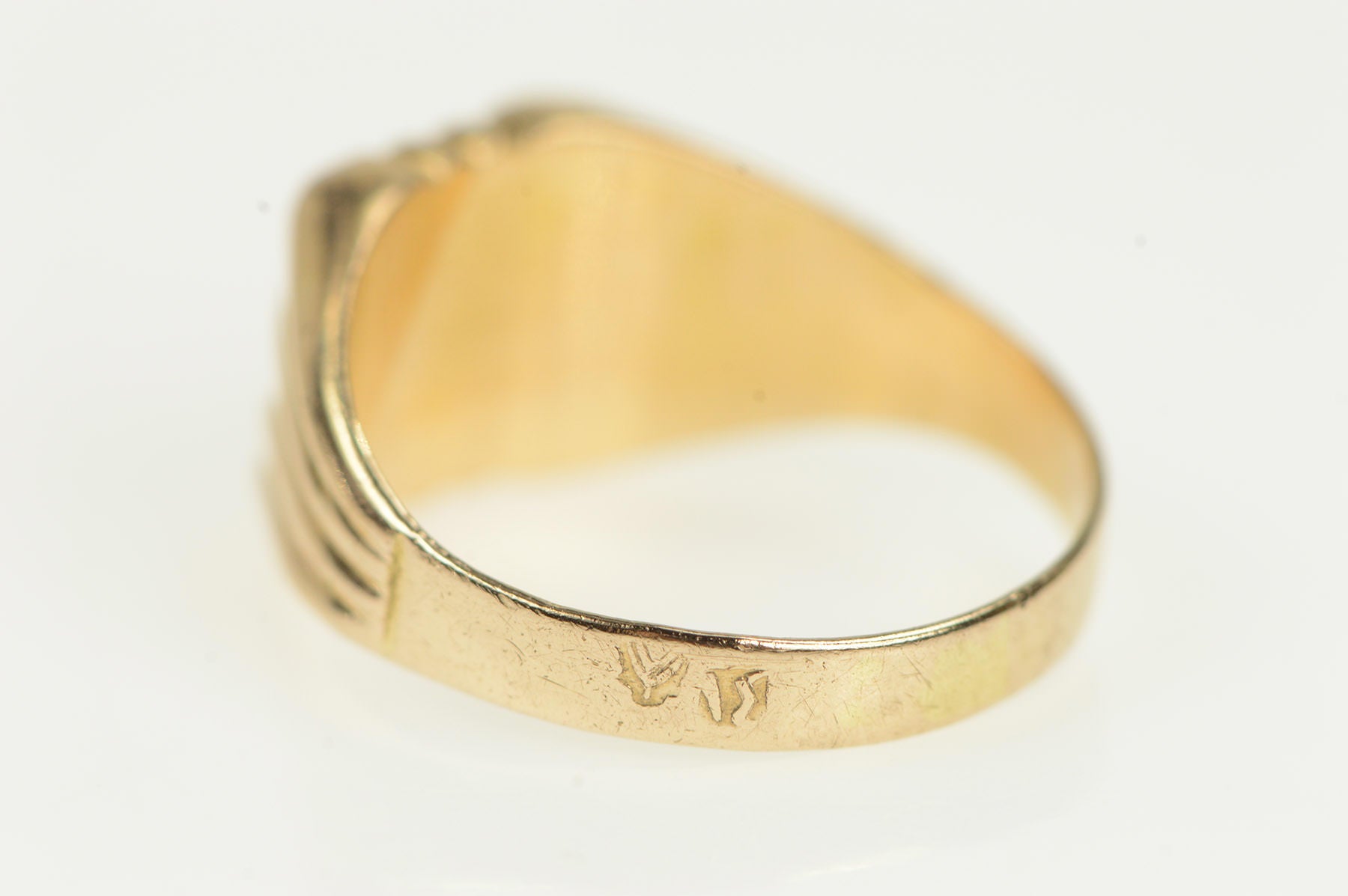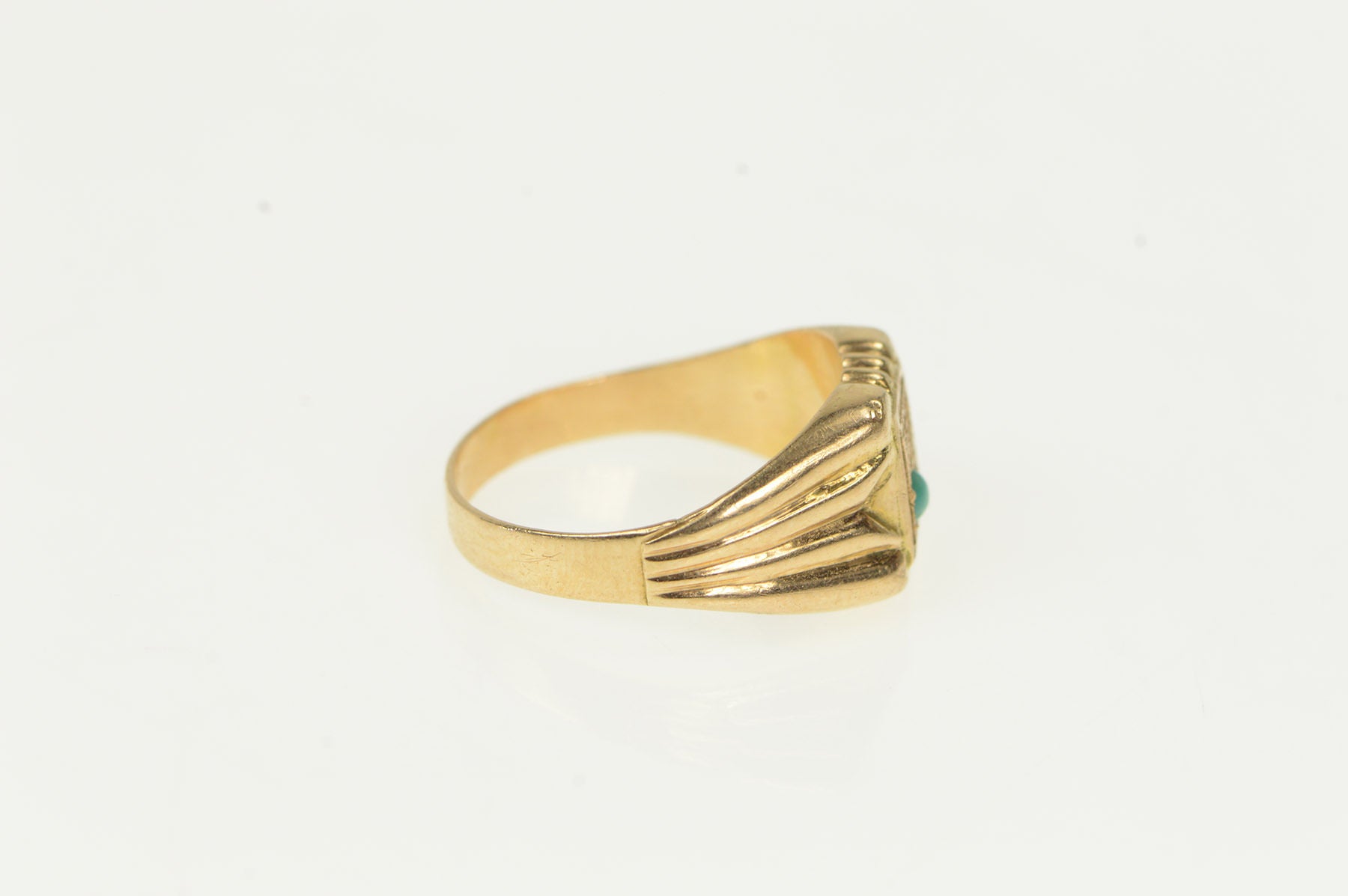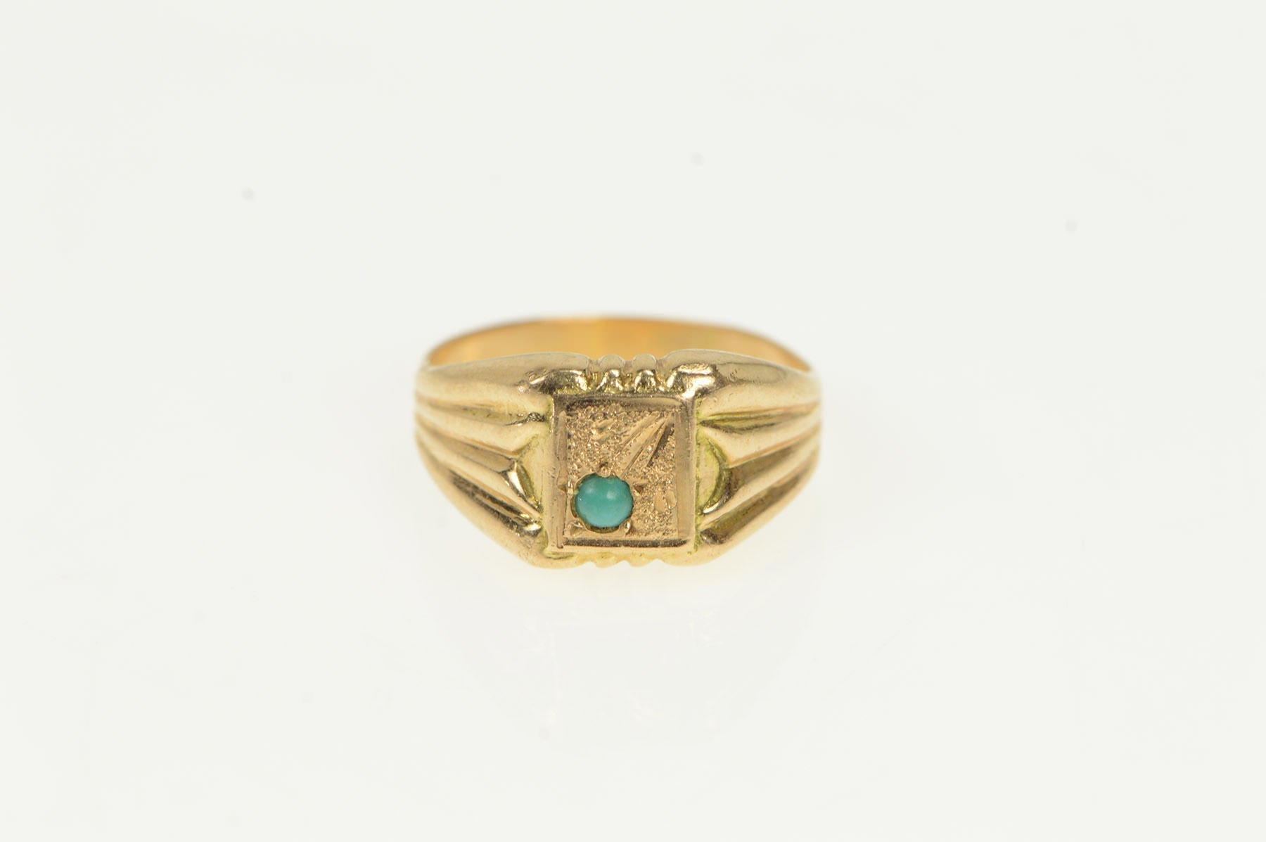 ·Item: 14K Ornate Turquoise Victorian Squared Baby Ring Size 2.75 Yellow Gold