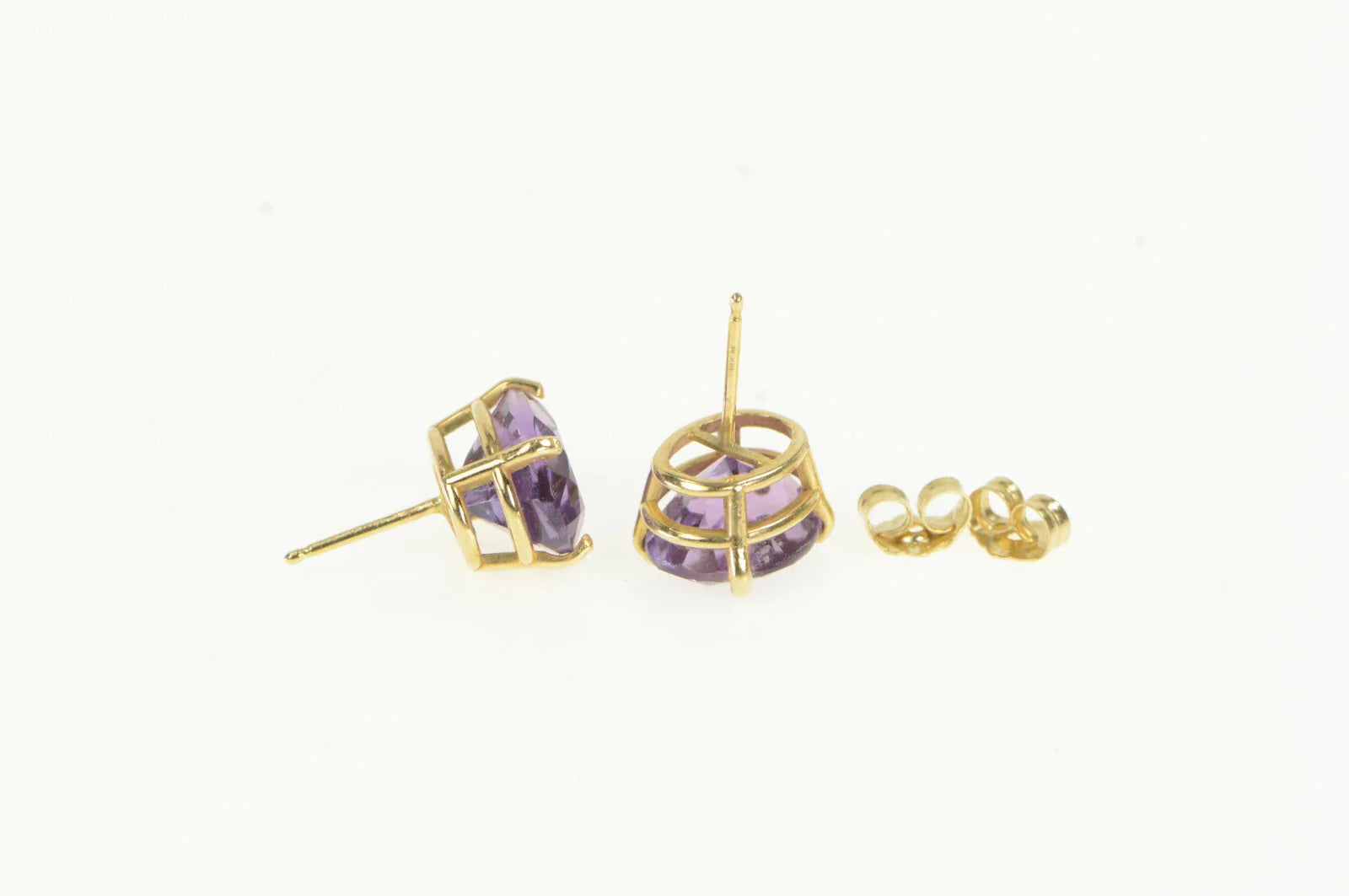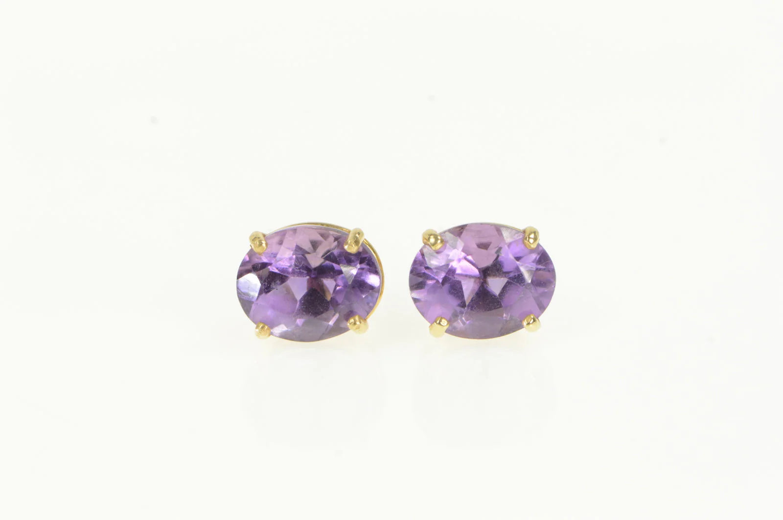 ·Item: 14K Oval Amethyst Solitaire Vintage Classic Stud Earrings Yellow Gold