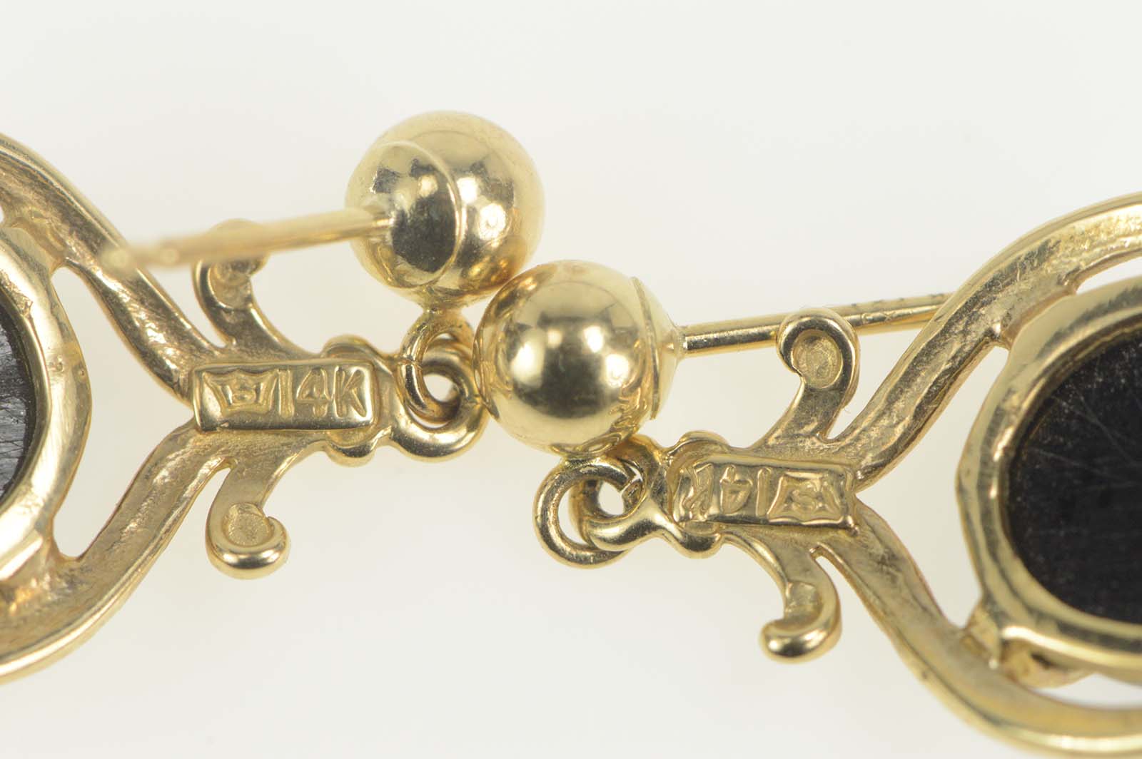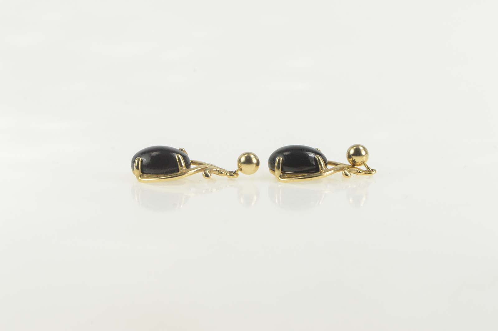 ·Item: 14K Oval Black Onyx Cabochon Dangle Scroll Earrings Yellow Gold