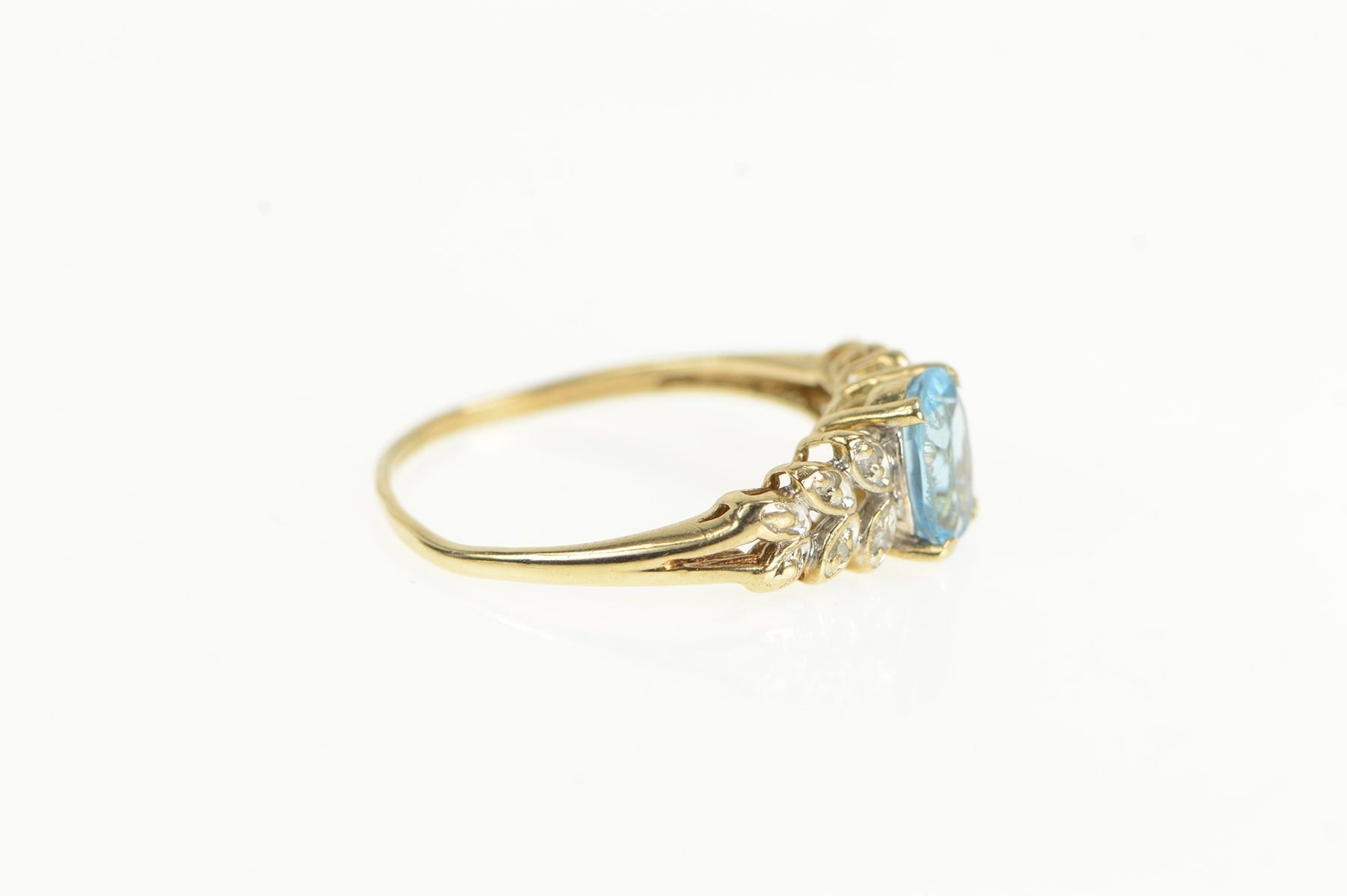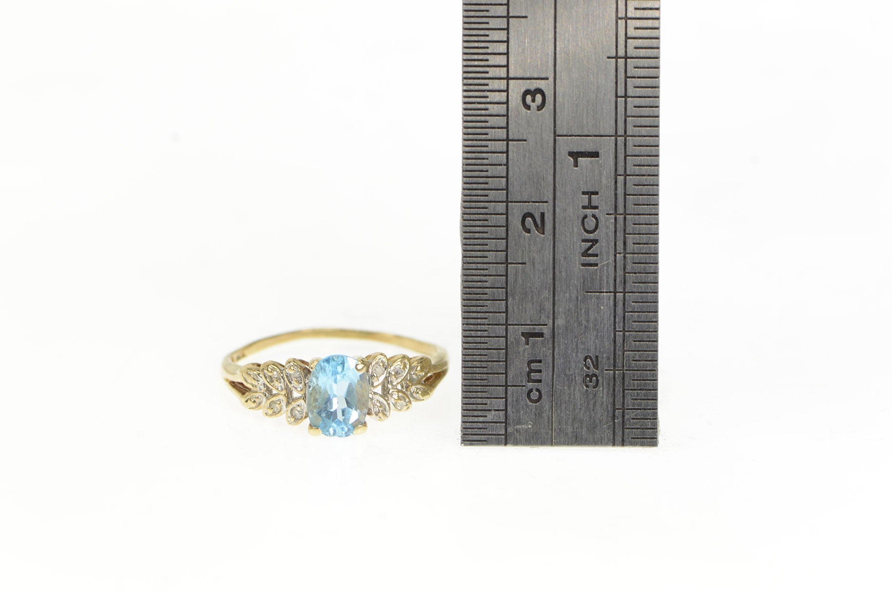 ·Item: 14K Oval Blue Topaz Diamond Petal Accent Vintage Ring Size 7 Yellow Gold