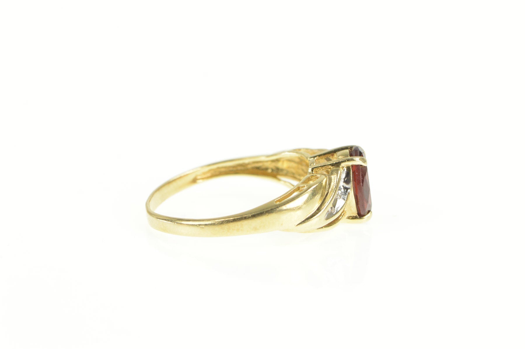 ·Item: 14K Oval Garnet Diamond Wavy Accent Ring Size 7 Yellow Gold