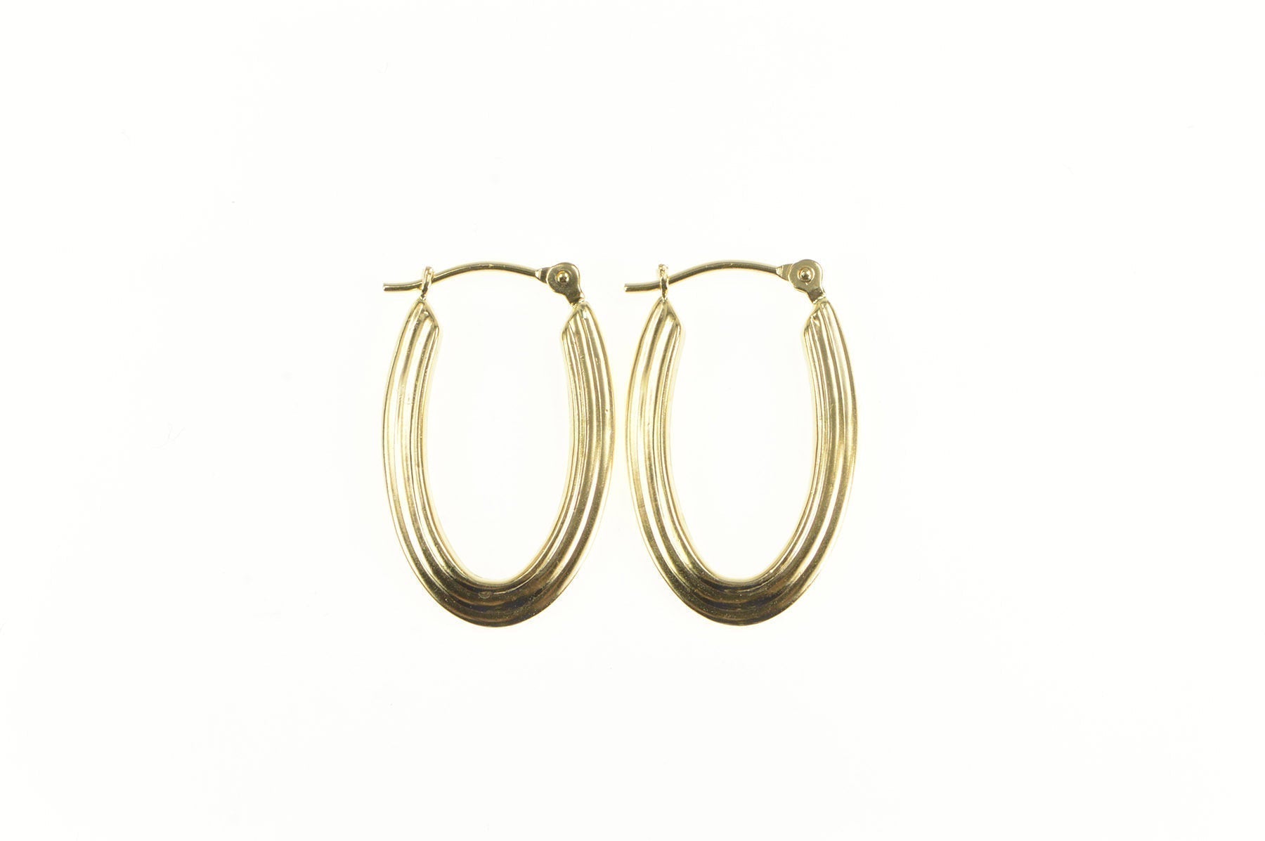 ·Item: 14K Oval Grooved Classic Simple Statement Hoop Earrings Yellow Gold