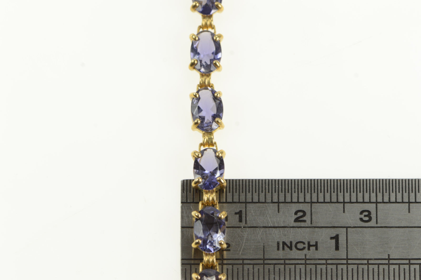 ·Item: 14K Oval Iolite Classic Statement Vintage Tennis Bracelet 7.25" Yellow Gold