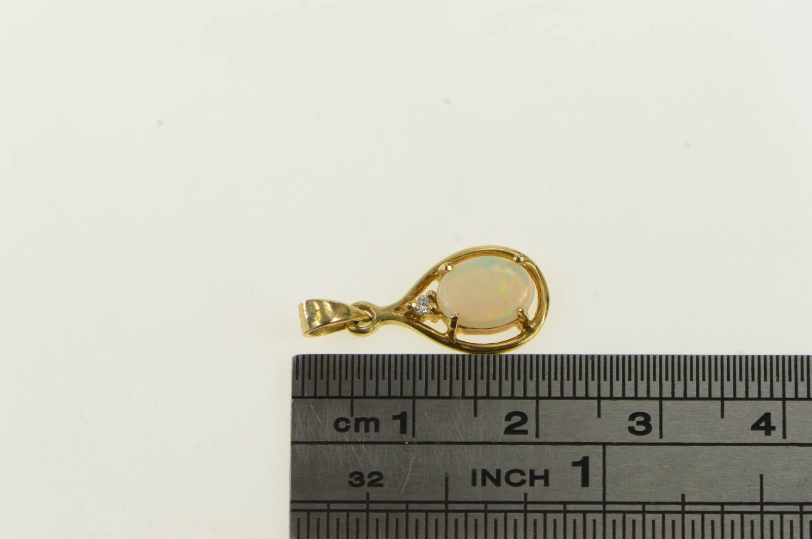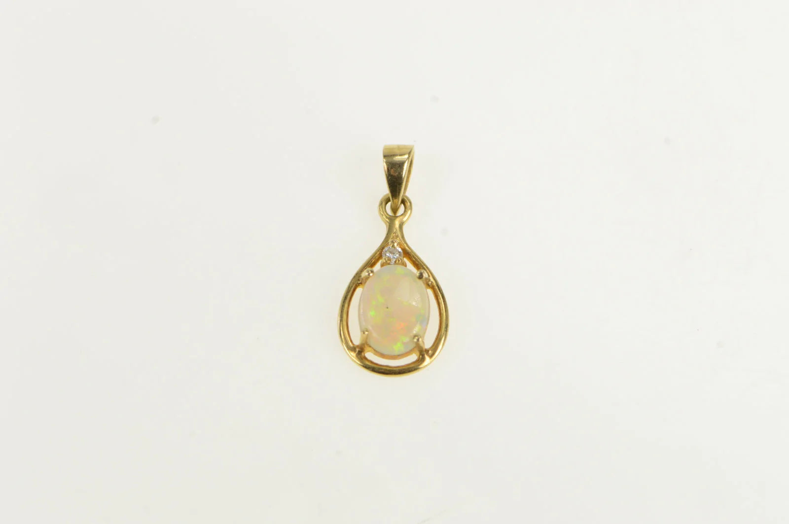 ·Item: 14K Oval Natural Opal Diamond Accent Vintage Pendant Yellow Gold
