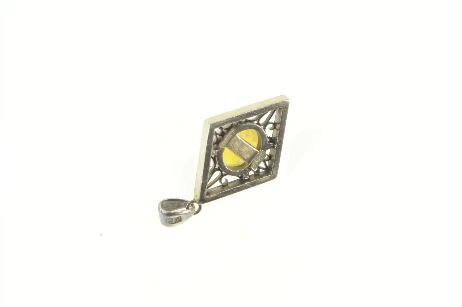 ·Item: 14K Oval Natural Opal Squared Filigree Statement Pendant White Gold