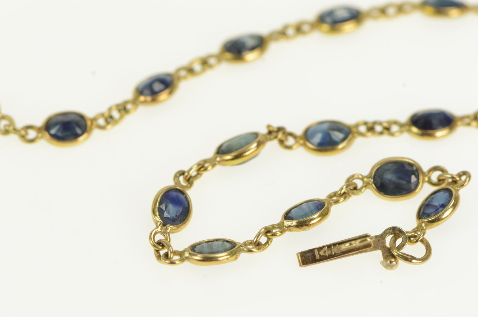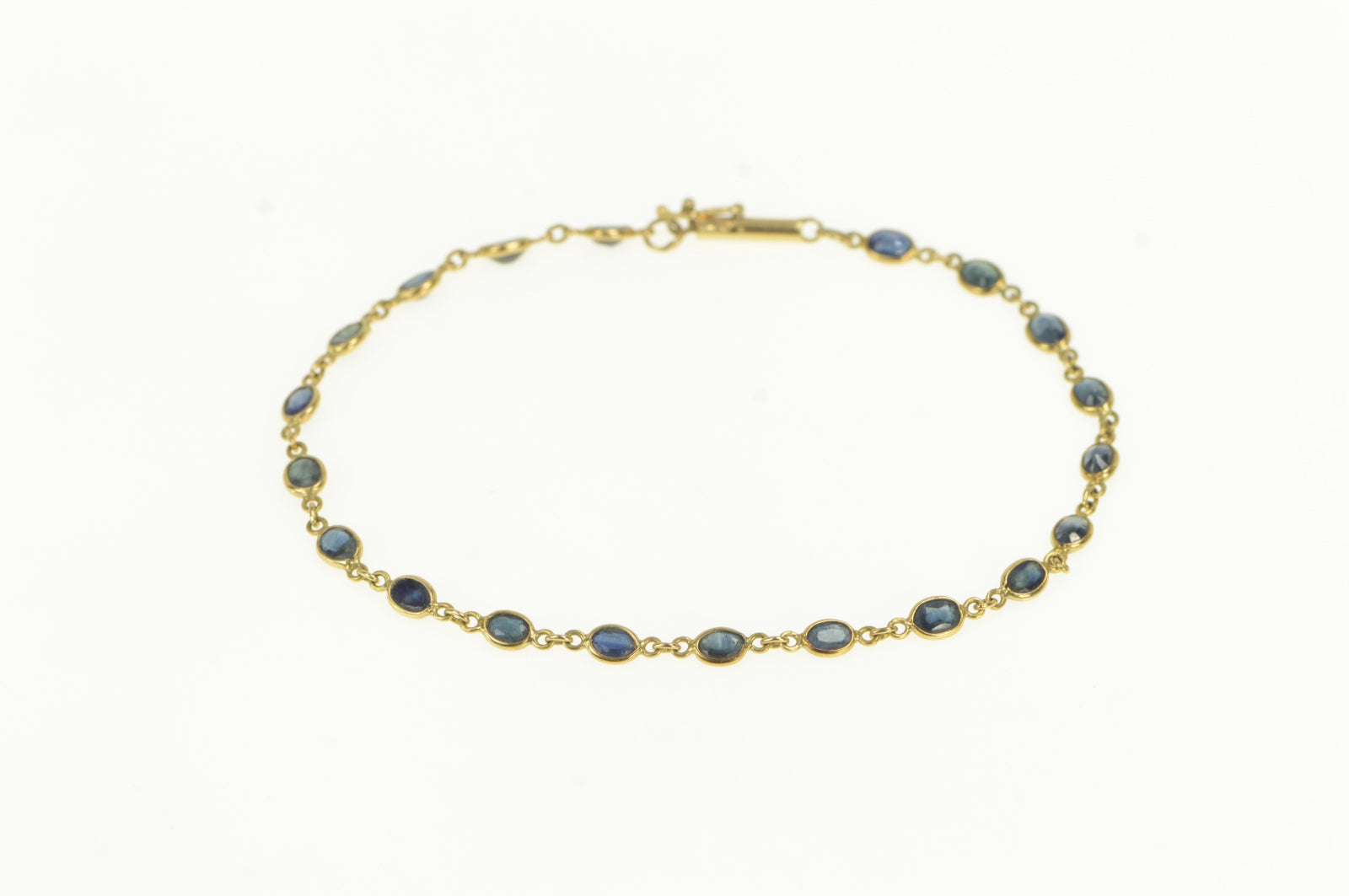 ·Item: 14K Oval Natural Sapphire Classic Vintage Tennis Bracelet 7.75" Yellow Gold